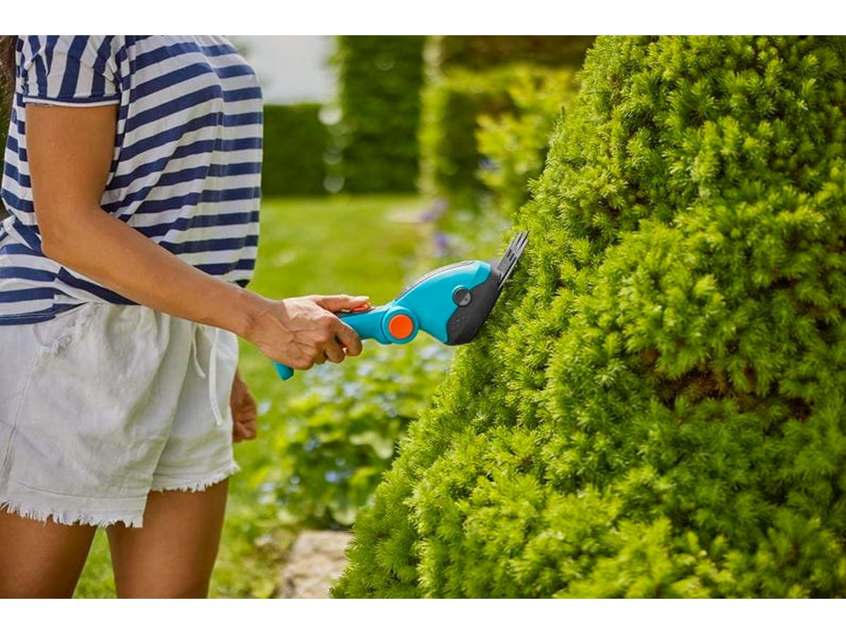 Batteri-græssaksen ComfortCut Li fra GARDENA hjælper dig med at klippe plænekanter og små buske, såsom buksbom. Klingen er præcisionsslebet og non-stick-belagt for langvarig skarphed. Det giver et flot, præcist og rent snit. Kvalitetsklingen er lavet i Tyskland.