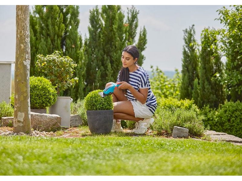 Batteri-græssaksen ComfortCut Li fra GARDENA hjælper dig med at klippe plænekanter og små buske, såsom buksbom. Klingen er præcisionsslebet og non-stick-belagt for langvarig skarphed. Det giver et flot, præcist og rent snit. Kvalitetsklingen er lavet i Tyskland.