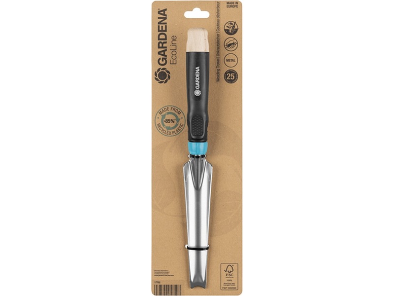 EcoLine ukrudtsjernet er designet med bæredygtighed i tankerne. Plasten er lavet af mere end 85% genanvendt materiale, hovedsagelig fra husholdningsaffald. Metallet består af mere end 25% genanvendt råmateriale, og træet er 100% FSC® certificeret.