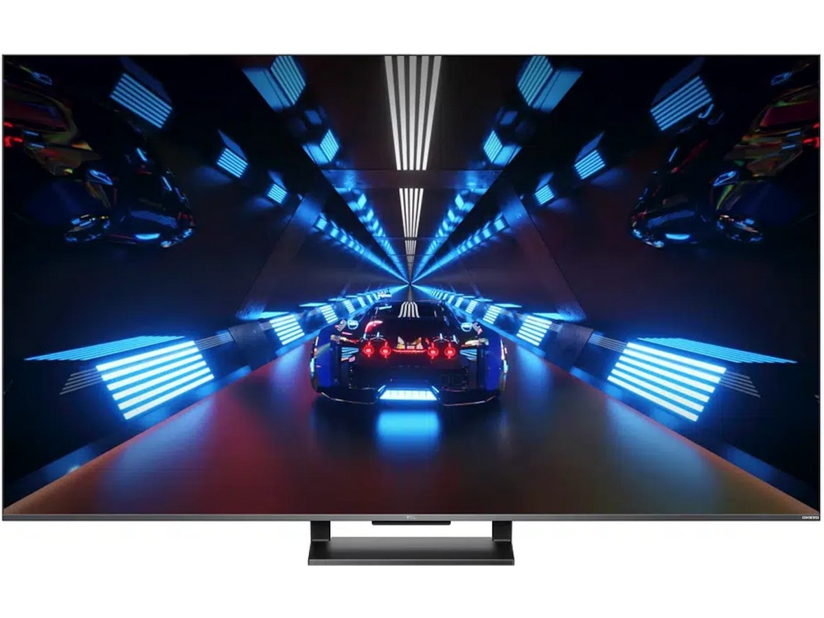 Funktionel elegance møder ydeevne: TCL C73-seriens kantløse luksusdesign kommer med et matchende centralt stativ*, der gør det muligt at stille dette storskærms-TV på enhver overflade derhjemme.