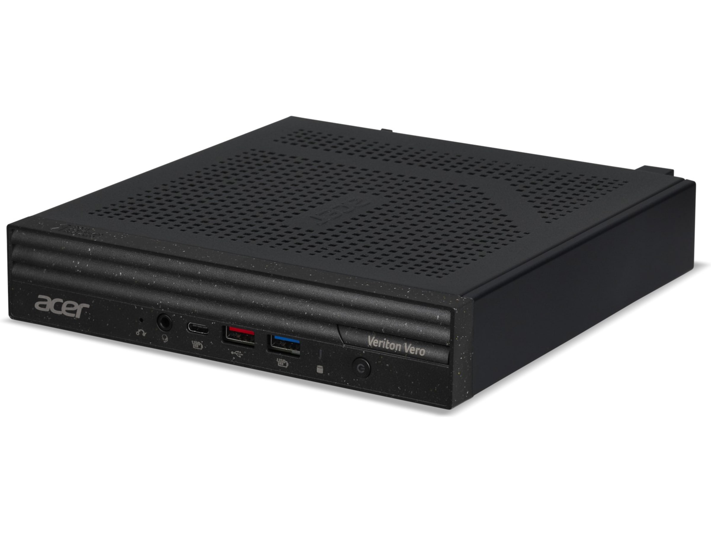 Den miljøvenlige Acer Veriton Vero Mini PC giver høj ydeevne i kommerciel kvalitet og er lavet af genbrugsplast (PCR). Din virksomhed kan sætte sit eget "grønne" præg, mens du får glæde af den ultrahurtige responsivitet fra 12. generation Intel® Core™ i3-processor.