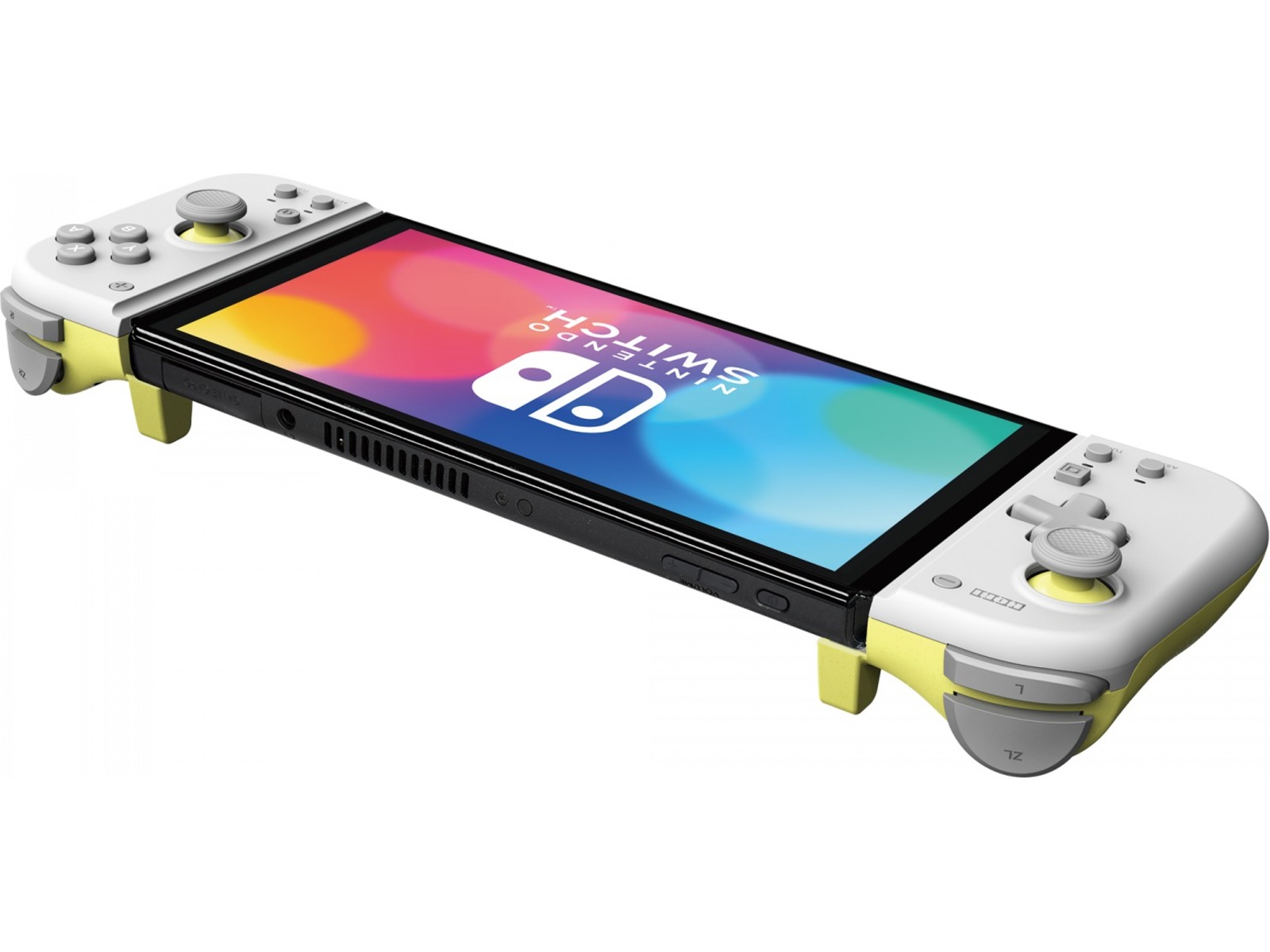 Split Pad Compact monteres på Nintendo Switch™-systemet for at give en controlleroplevelse i fuld størrelse i håndholdt tilstand. Den ergonomiske formfaktor passer perfekt til dine hænder for øget komfort og kontrol.