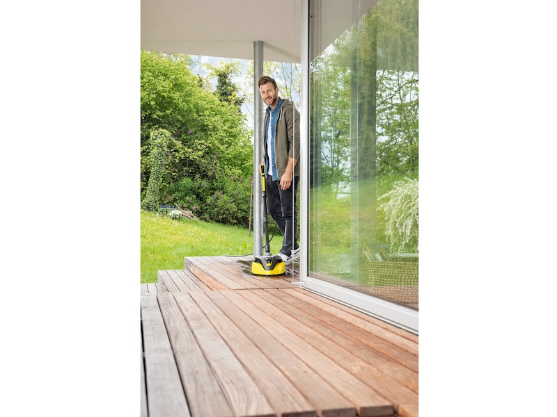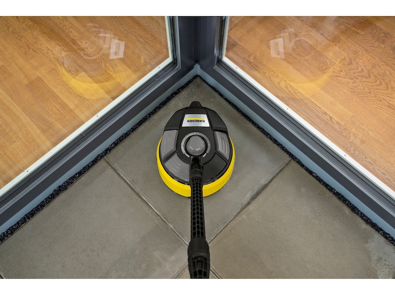 T 7 Plus T-Racer terrassevasker er et effektivt værktøj til udendørs rengøring uden stænk og spild. Dobbeltstrålingsrotor fjerner snavs fra store overflader 50% hurtigere end ved anvendelse af almindelige jetrør.