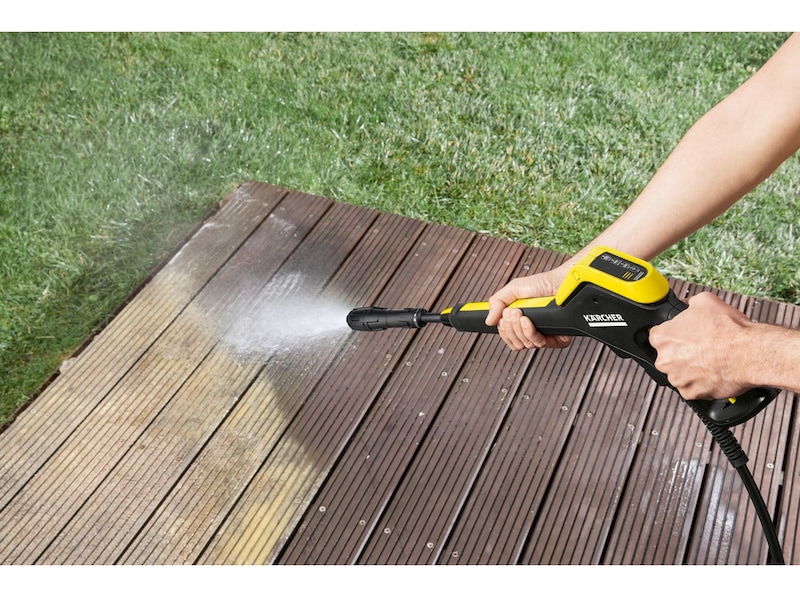 For endnu større kontrol i mange rengøringssituationer og til forskellige rengøringsgenstande assisteres brugeren med tips og tricks fra applikationskonsulenten via Kärcher Home & Garden-appen. Applikationskonsulenten beskriver det optimale trykniveau for det valgte rengøringsobjekt. Trykket kan nemt justeres manuelt ved at dreje Vario Power sprøjtelansen.