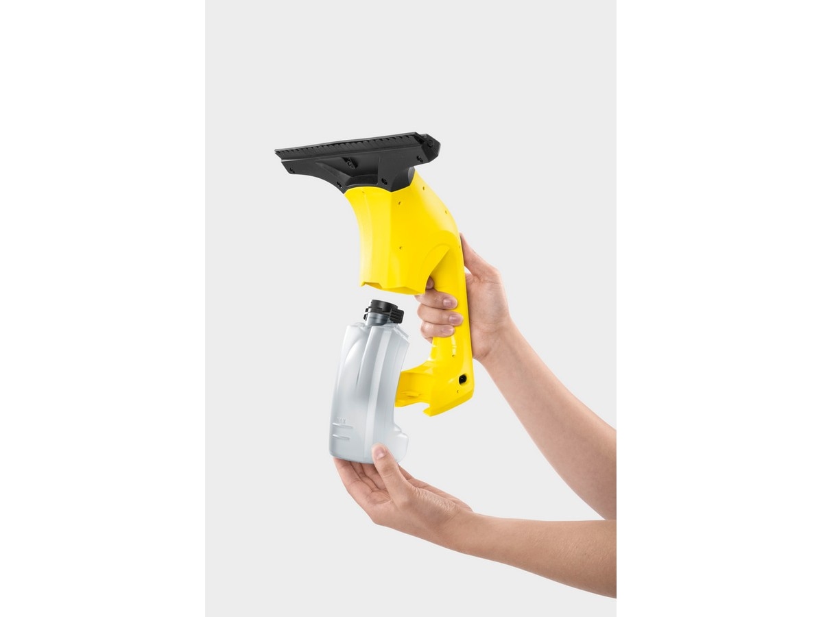 WV 1 Plus Window Vac fra Kärcher sikrer stribefri, rene vinduer og sparer også masser af tid og kræfter. Den intelligente kombination af sprayflaske og svaber garanterer ekstremt effektiv rengøring.
