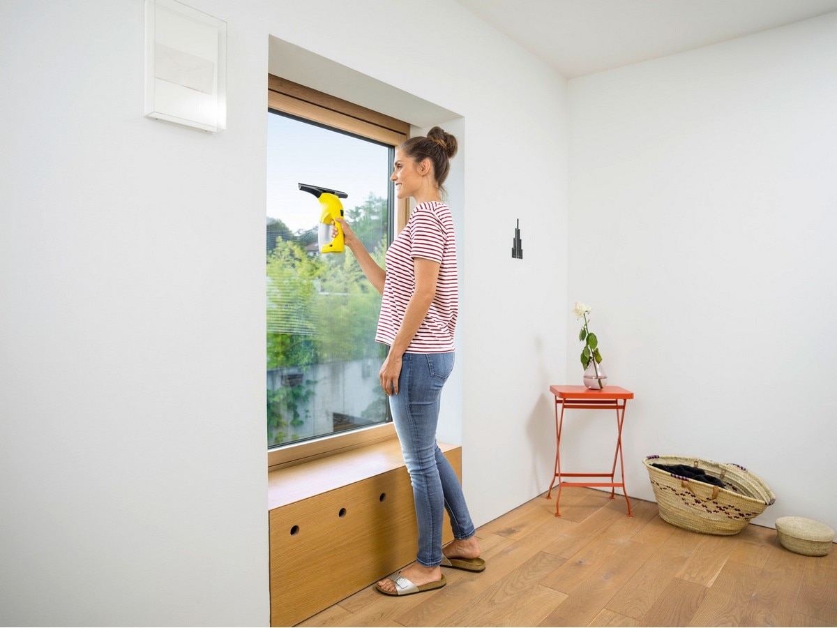 Den lille, handy enhed gør rengøring af glatte overflader endnu nemmere. Selv den nederste vindueskant er nem at nå med Kärcher Window Vac.