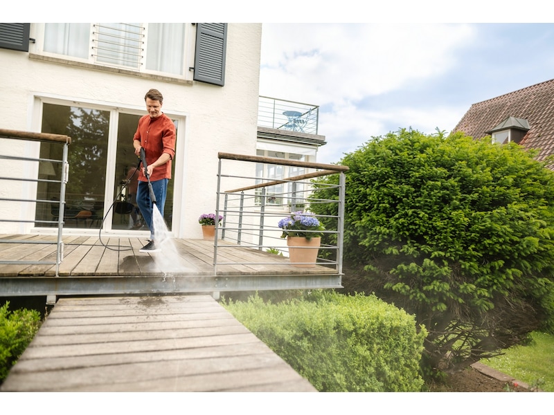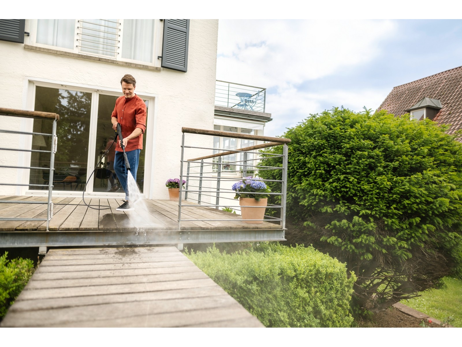 Den avancerede vandkølede motor imponerer med sin lange levetid og høje ydeevne. Med et tryk på 145 bar og en vandmængde på 500 liter er den velegnet til de fleste vaskeopgaver rundt omkring i huset, bilen og i haven.