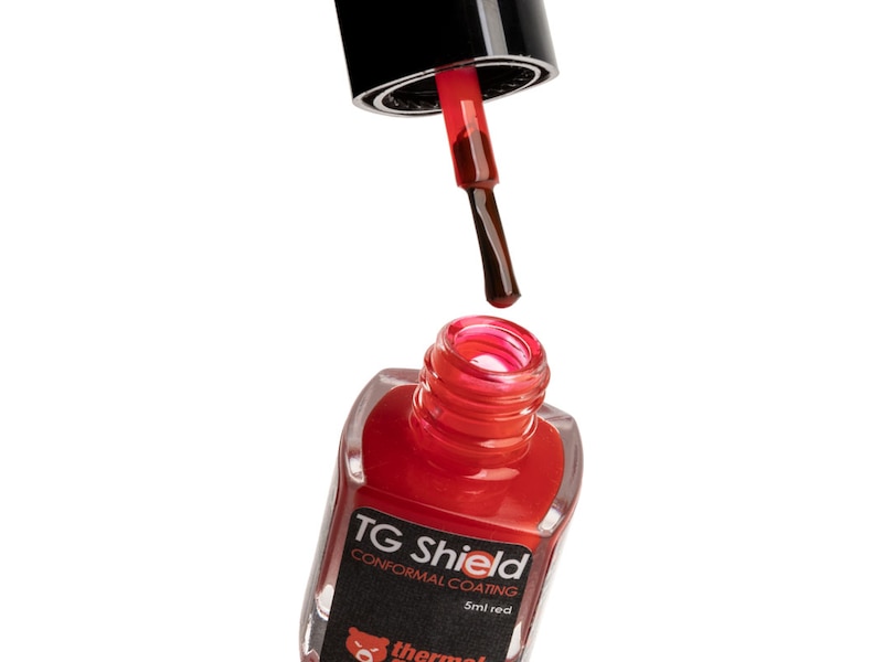 Thermal Grizzly TG Shield er en højtemperatur-konform belægning til at beskytte komponenter mod flydende metalkortslutninger.