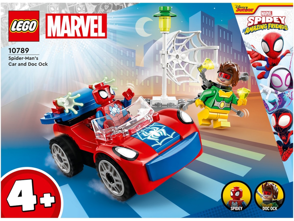 - Superhelteaction, der lyser op – LEGO® Marvel sættet Spider-Mans bil og Doc Ock (10789) indeholder helte- og skurke-minifigurer samt et køretøj, der er skabt specielt til børn fra 4 år