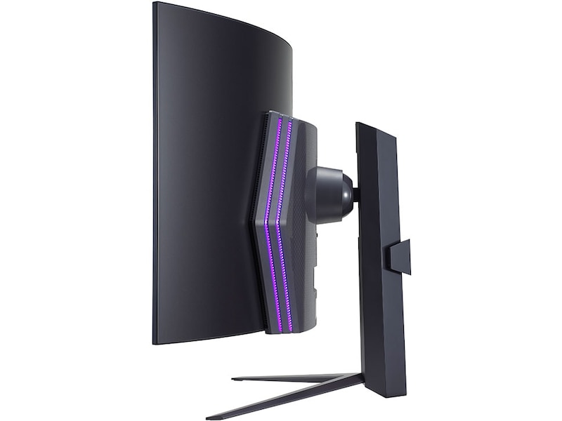 Svingning/hældning/højde kan justeres på 45GR95QE, som har et stort set rammeløst design.