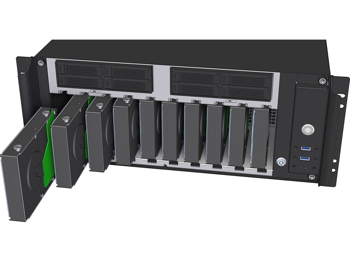 Udvidelses-båse 10 (total) / 10 (fri) x frontadgang - 3.5", 8 (total) / 8 (fri) x frontadgang - PCIe-kort, 4 (total) / 4 (fri) x intern - 2.5"
