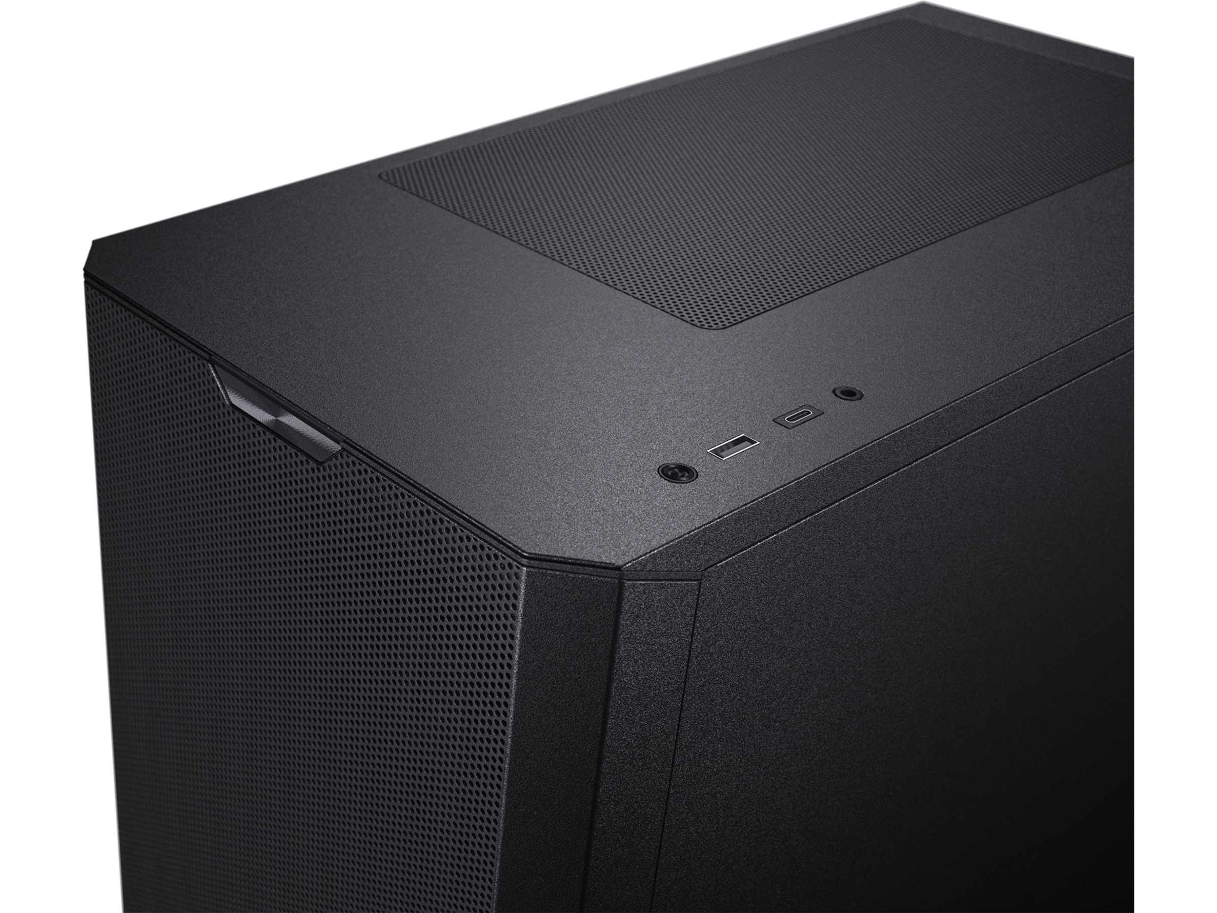- Let tilgængelig front-I/O med USB 3.0 Type A og Type C, mikrofon/hovedtelefonkombination, tænd/sluk-knap og nulstillingsknap.