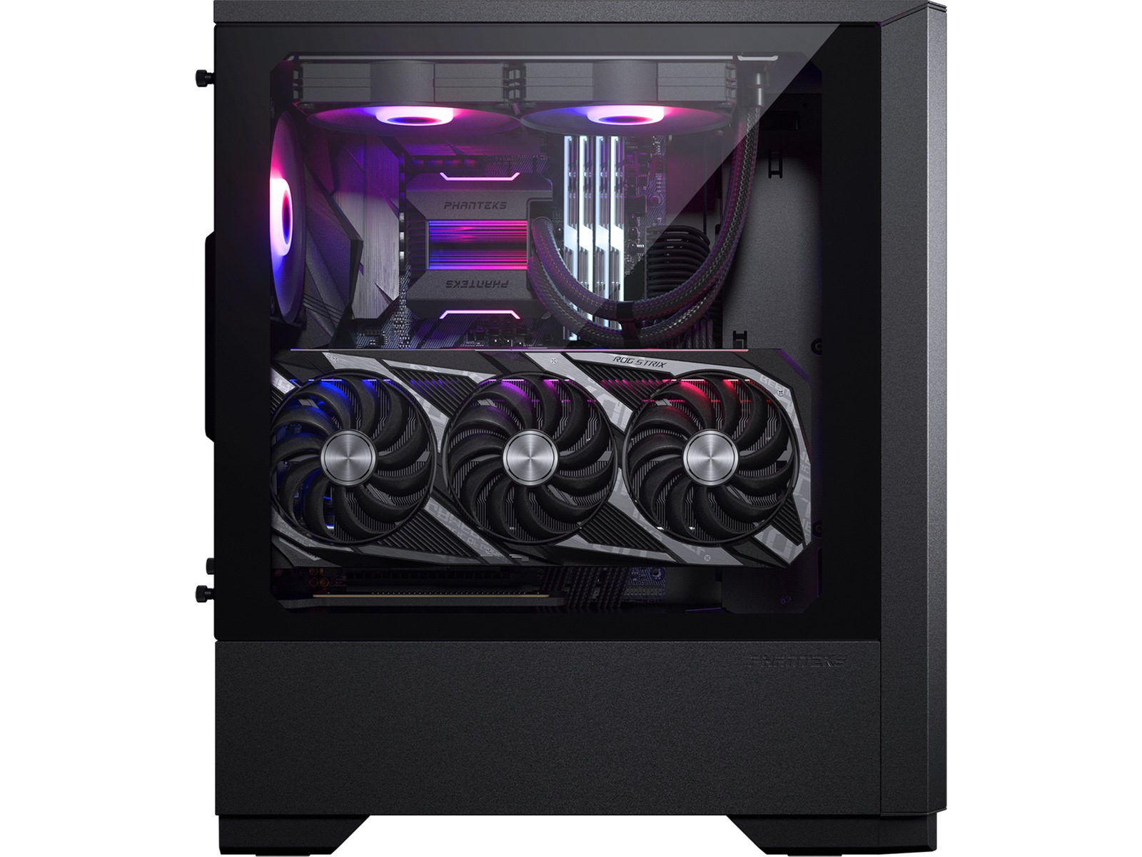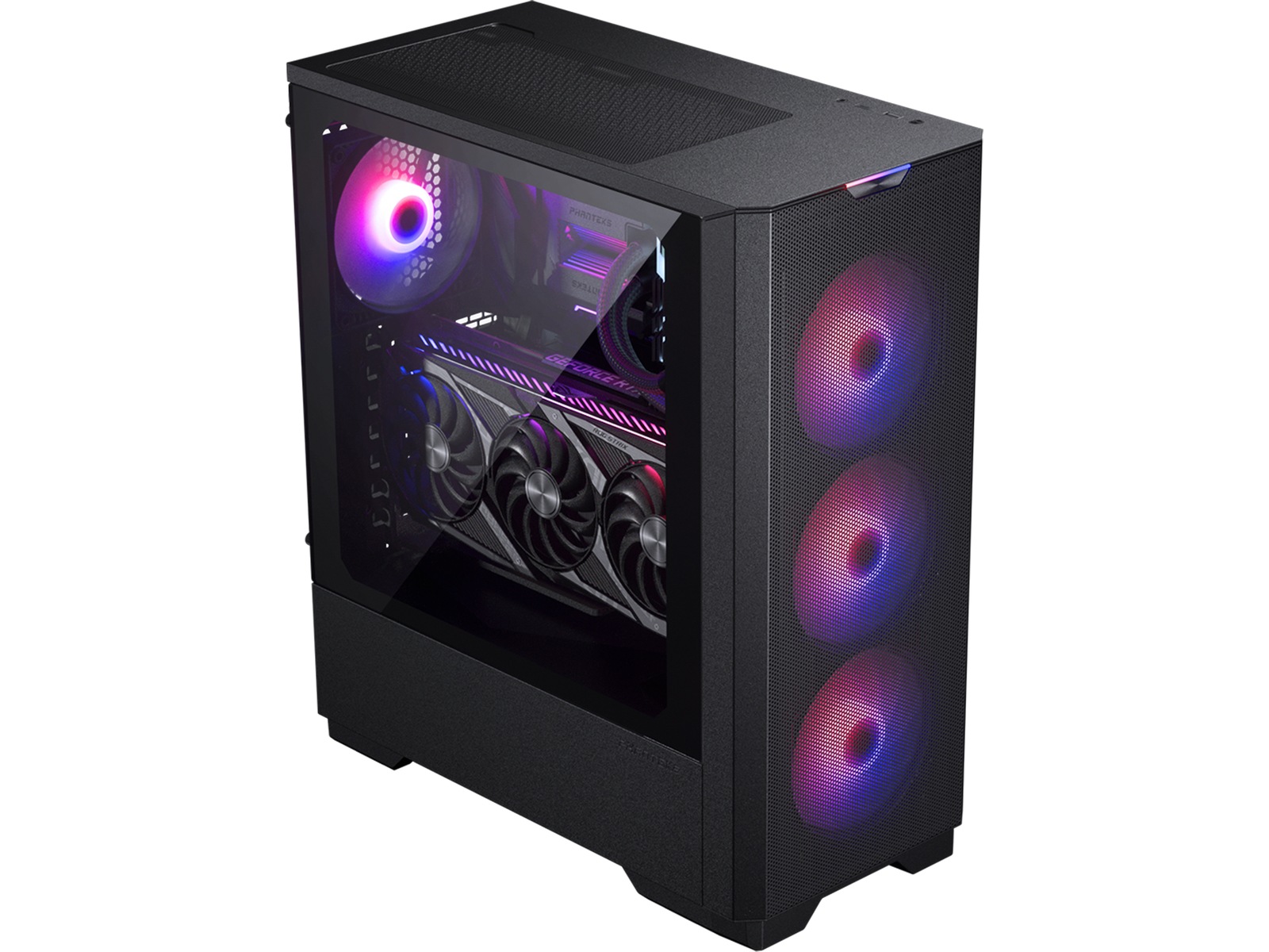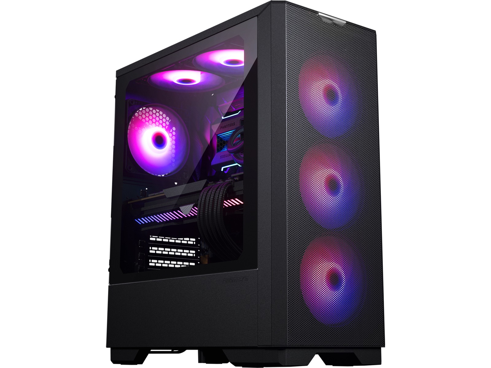Phanteks Eclipse G300A er lille i størrelse og stor på funktioner, og bringer høj luftstrømsydelse i et kompakt ATX-chassis. Store GPU'er, som ASUS RTX4090 STRIX, passer perfekt til frontblæsere installeret, og selv avancerede CPU'er kan nemt afkøles med front 360 eller top 240 radiatorstøtte. G300A er udstyret med tre 120 mm D-RGB blæser og en D-RGB bundkortadapter til at forbinde den direkte til et bundkort.