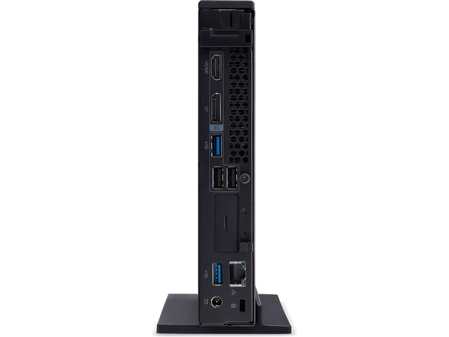 Med det yderst kompakte format, der kun fylder 1 liter, kan den stationære Veriton N-computer placeres hvor som helst, enten liggende eller stående takket være foden. Du kan oven i købet nemt tænde computeren via skærmens tænd/sluk-knap.