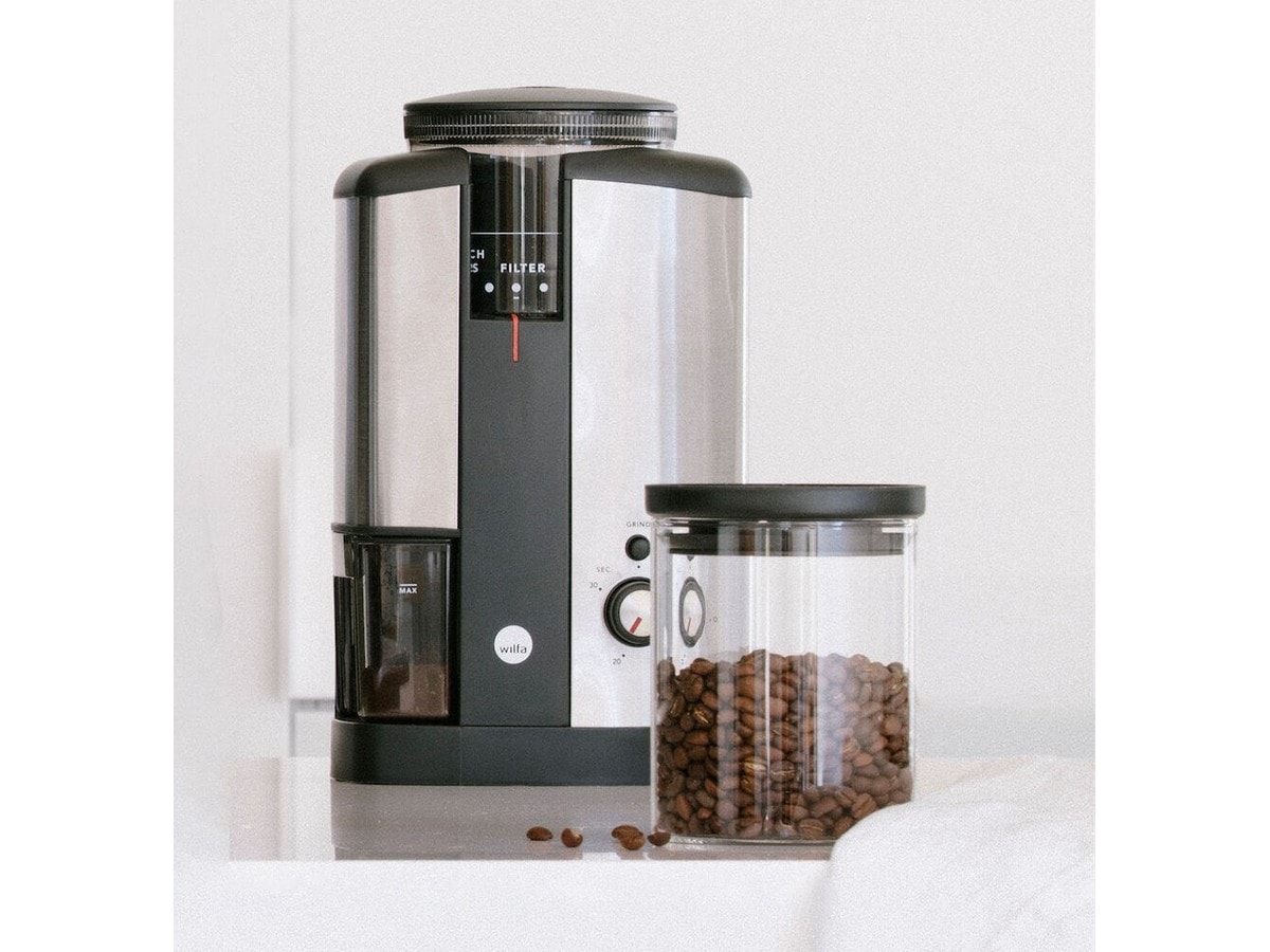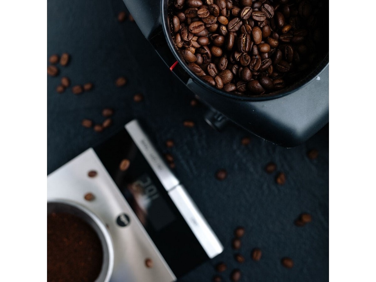 Kværningsgraden vælges nemt ved at dreje på bønnebeholderen. Kaffekværnen har fem kværningsgrader at vælge imellem: kogekaffe, stempelkande, filterkaffe, aeropress og Moka pot. Kværningsgraden kan desuden nemt finjusteres, så du altid finder den helt rigtige indstilling til din smag og dine kaffebønner.