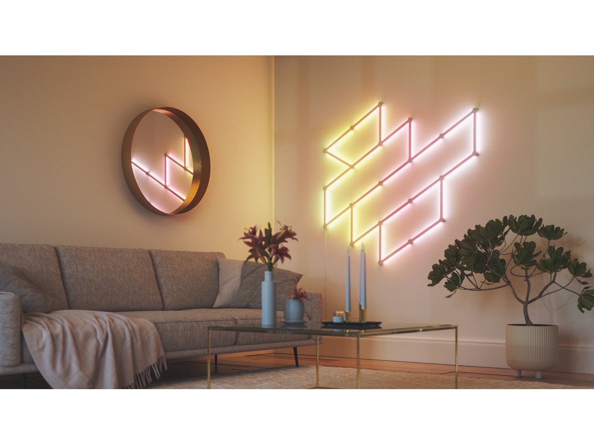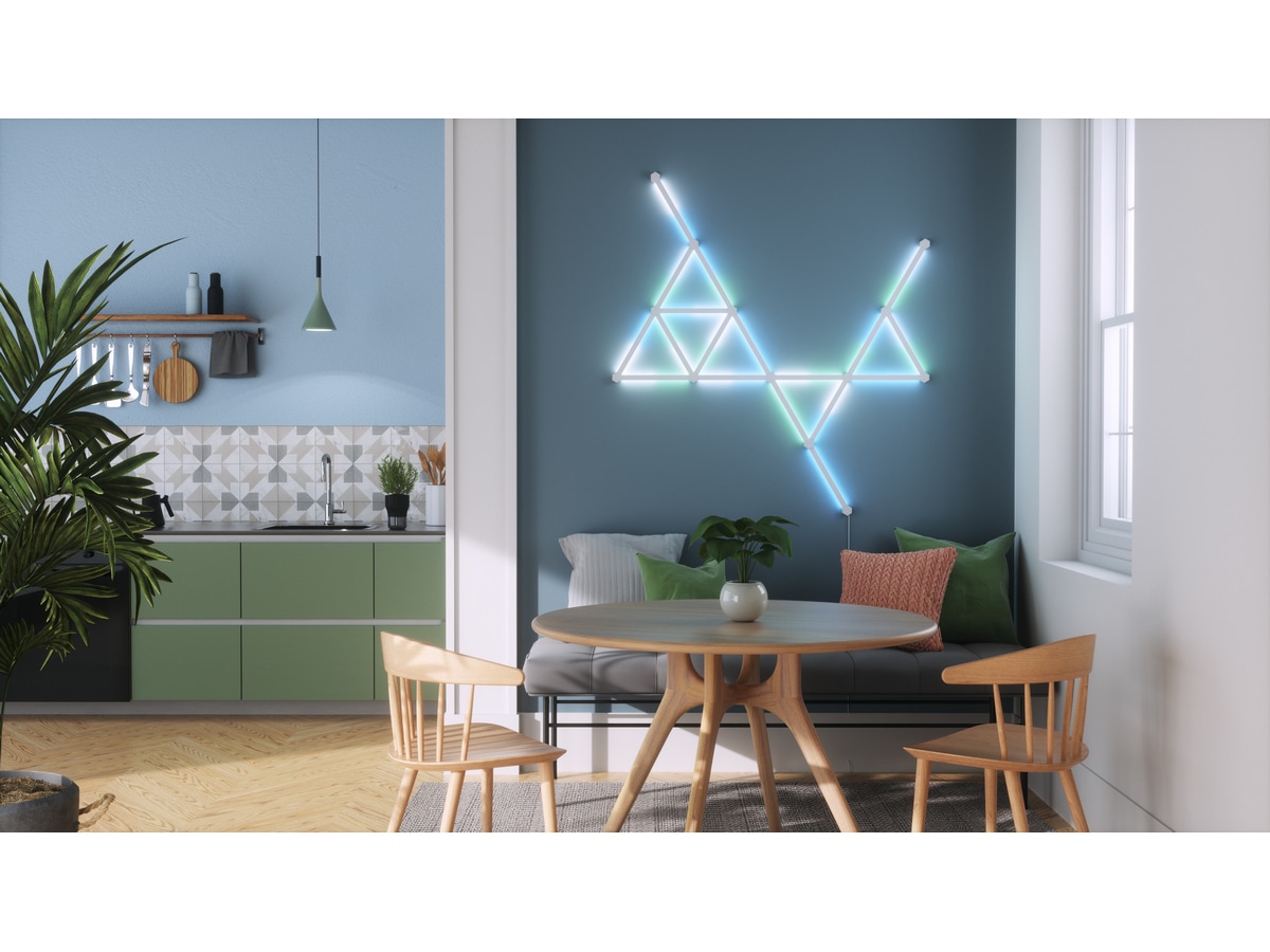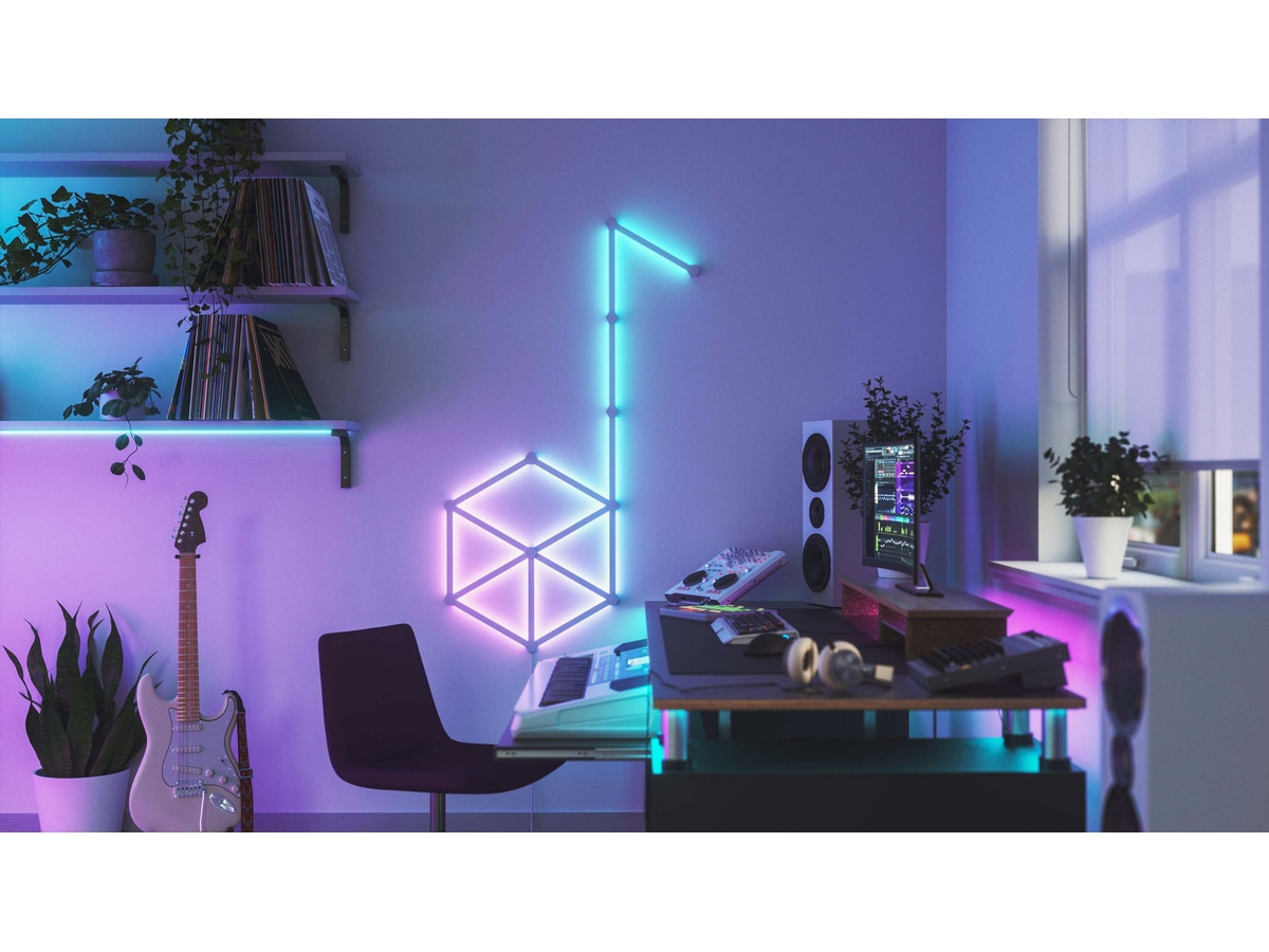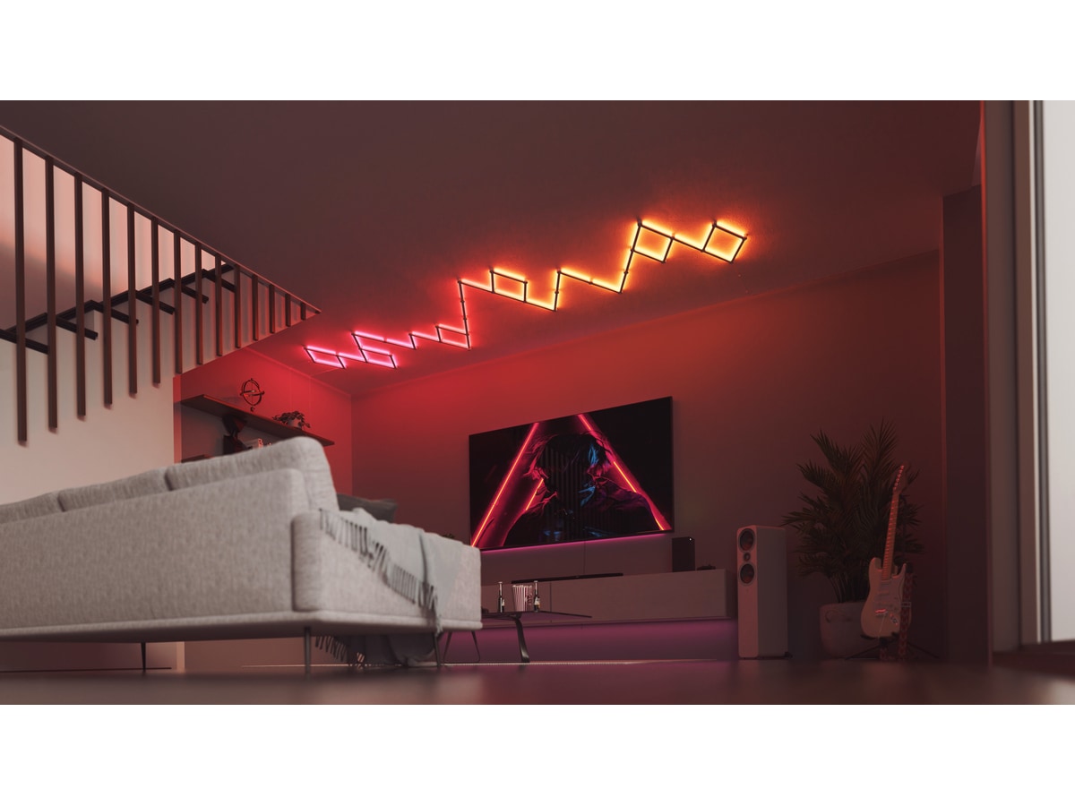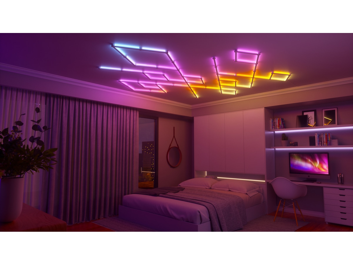 Nanoleaf Lines er smarte baggrundsbelyste LED-lysbjælker, der leverer fantastisk RGB-belysning i en aldrig før set modulær formfaktor. Forbind linjer og sæt dem sammen til dine egne personlige geometriske layouts, og tilpas flere end 6 mio. farver og lysanimationer for at skabe et design, der er helt unikt for dit sted.