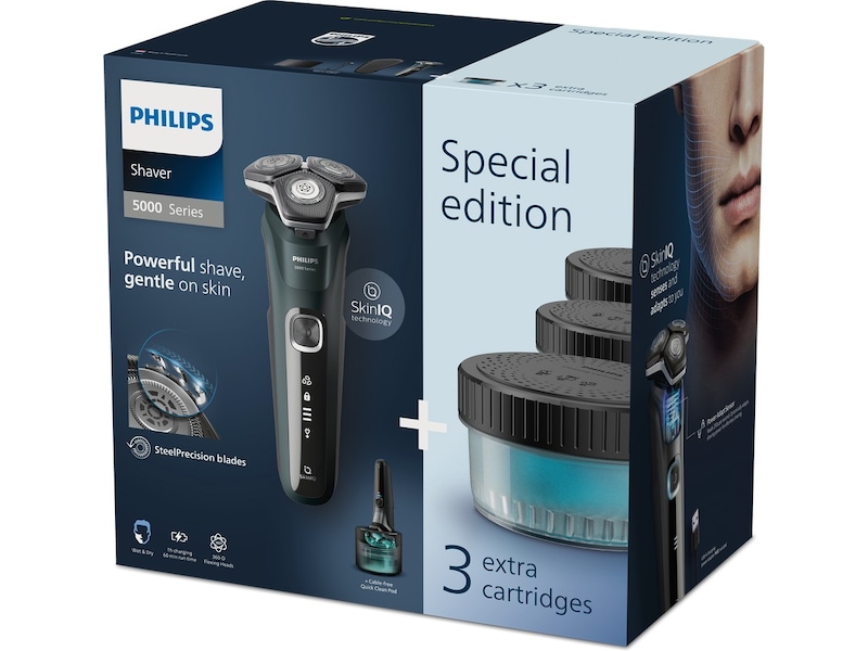 Philips 5000-serien giver en effektiv barbering og fjerner nu endnu flere hår pr. strøg*. Shaveren er udstyret med avanceret SkinIQ-teknologi, så den registrerer og tilpasser sig hårtætheden, og du får en bedre hudkomfort.