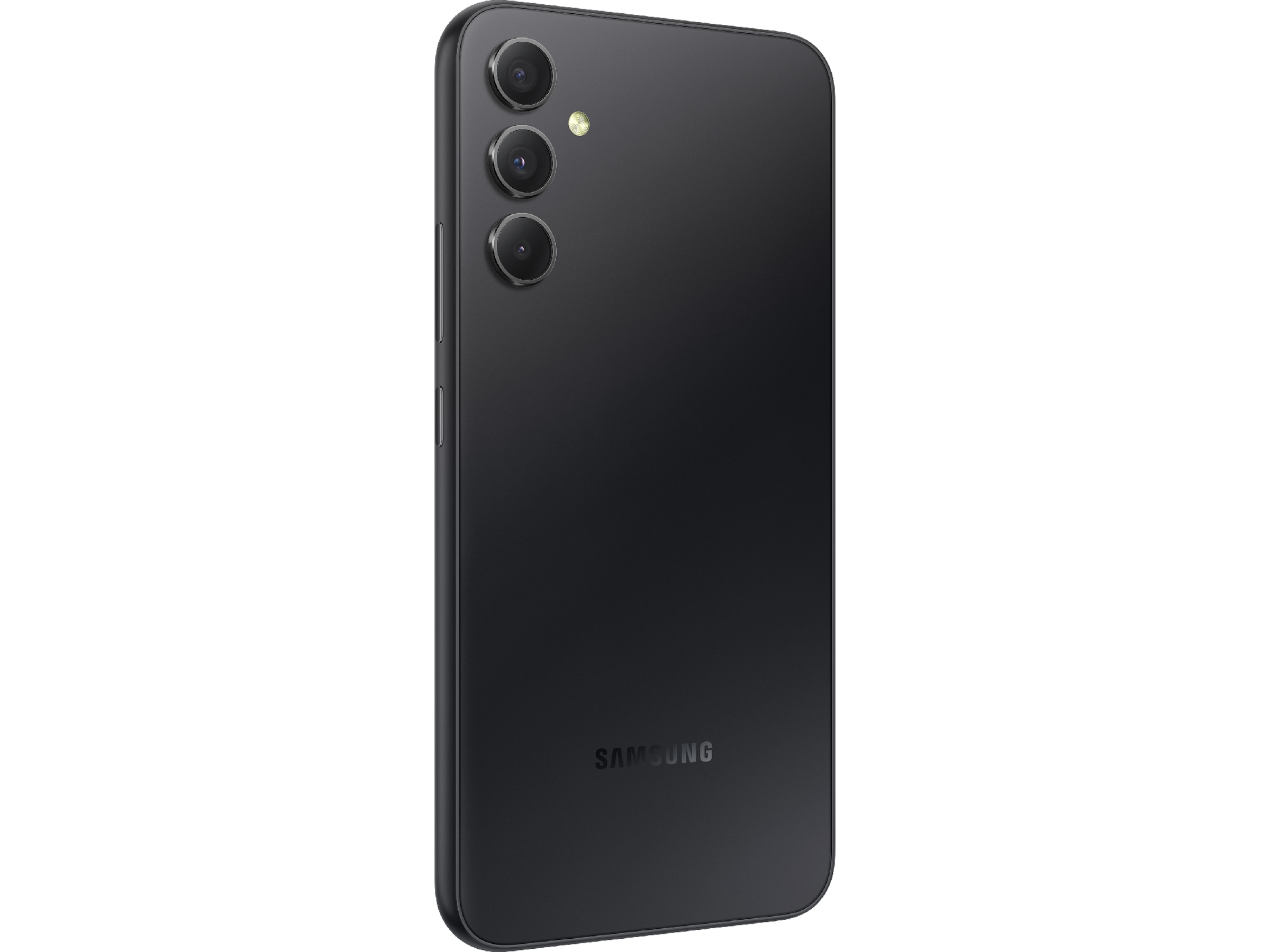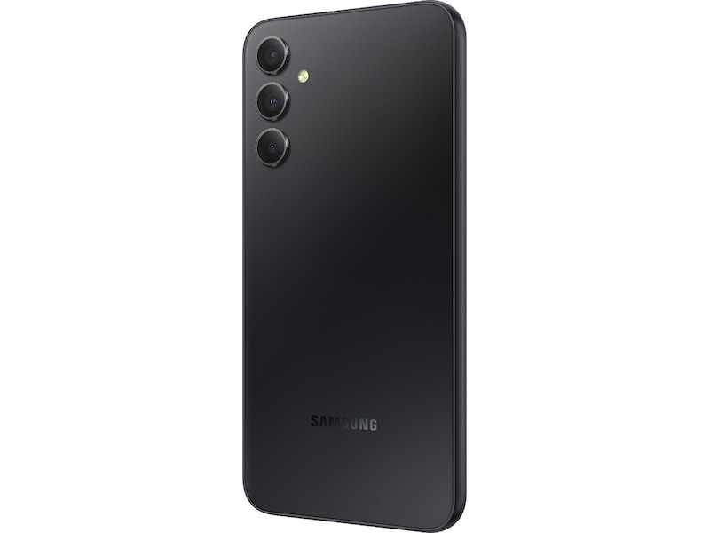 Galaxy A34 5G har rene linjer og en finish i klart glas. Den fås i de tidløse farver Awesome Lime, Awesome Silver, Awesome Violet og Awesome Graphite.