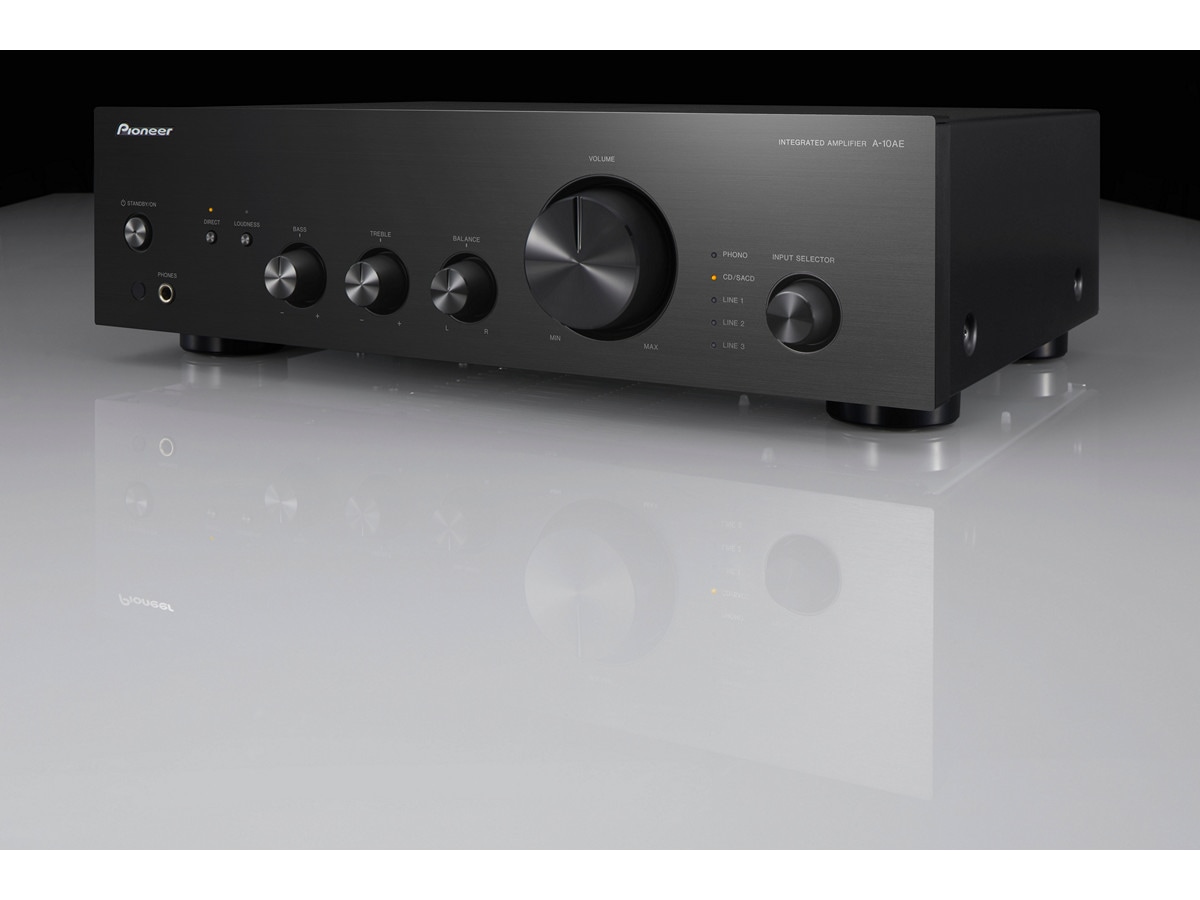 Baseret på Pioneers Direct Energy Design-koncept, forfølger den integrerede A-10AE-forstærker et højt S/N-forhold for at skabe et overvældende lydfelt, der er rigt på virkeligheden. Højdepunkter inkluderer isoleret strømforsyning, Direct Function og phono MM-input, der lader lyttere nyde sprød, klar lyd tæt på den originale forestilling.