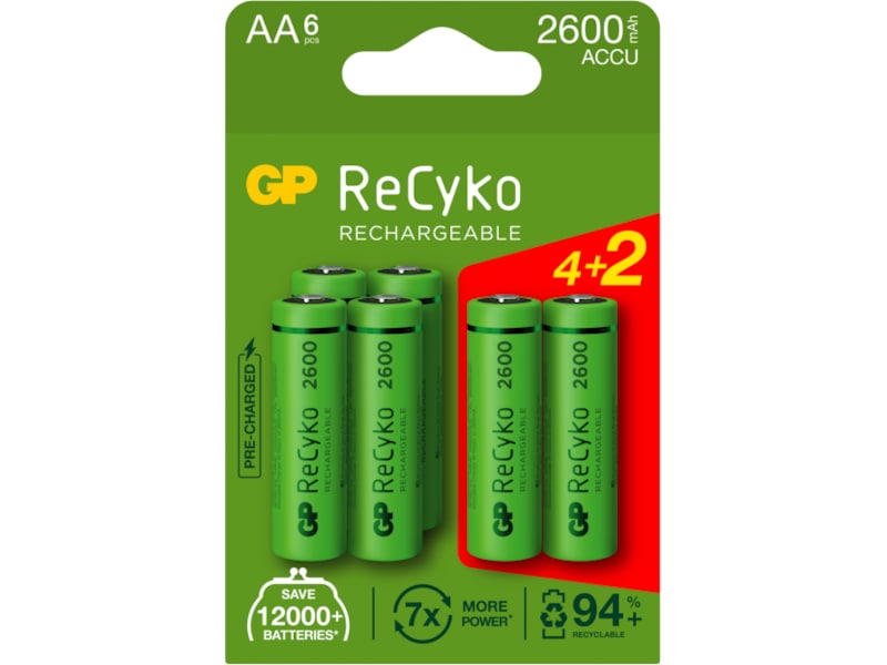 GP Recyko AA batteri, 2600 mAh, 4+2-pk