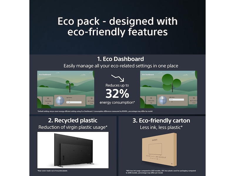 | Egenskaber | Audio Description (AD), CalMAN autokalibreringssupport, XR Triluminos Pro Display, Chromecast indbygget, Sovetimer, Tekstforstørrelse, Apple AirPlay support, Dual Database Processing, BRAVIA CAM support |