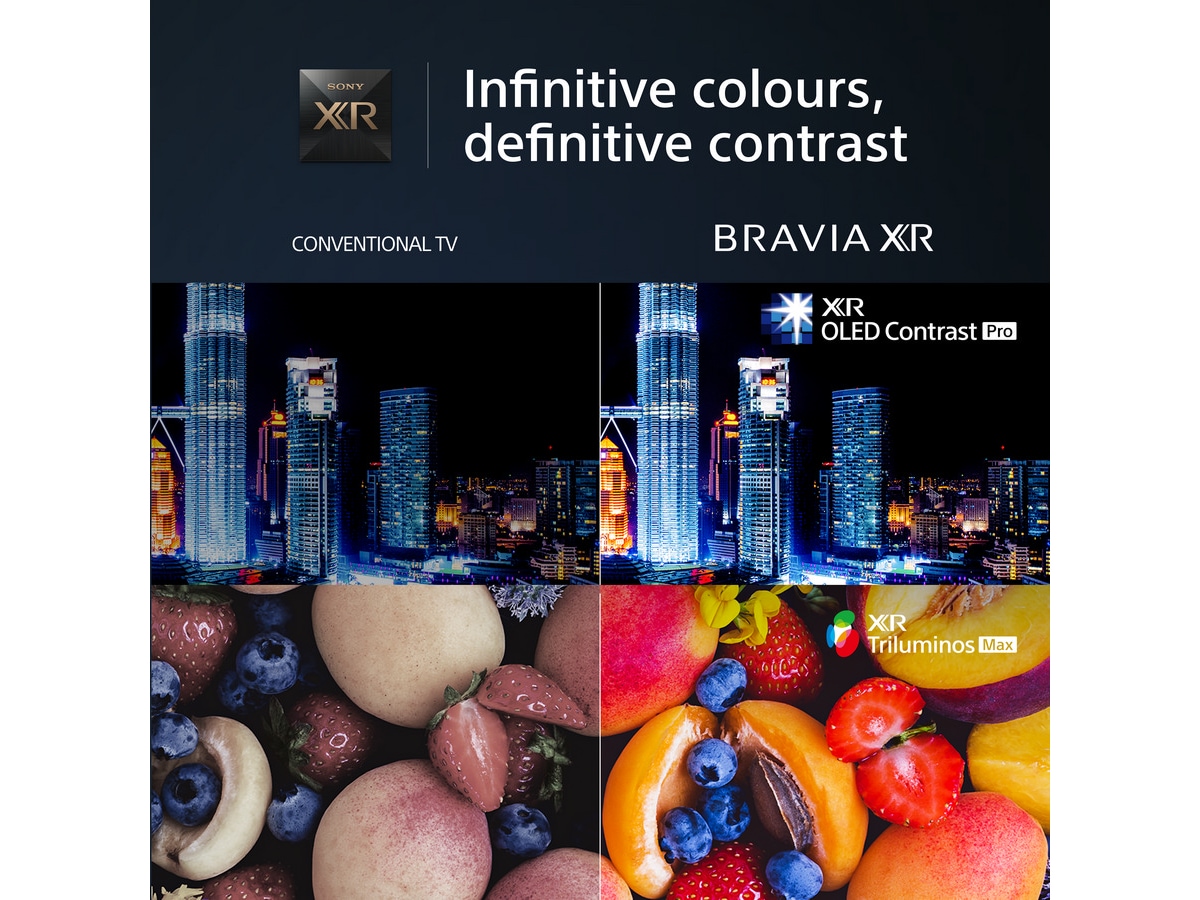 | Billedforbedringer | XR Smoothing, Dynamic Contrast Enhancer, XR TRILUMINOS Max, Pixel Contrast Booster, Klaritetsforbedring, Auto HDR Tone Mapping, XR 4K-opskalering, Netflix Calibrated Mode, IMAX Enhanced, OLED XR Contrast Pro, Live Color, BRAVIA CORE-kalibreret, XR Super Resolution |