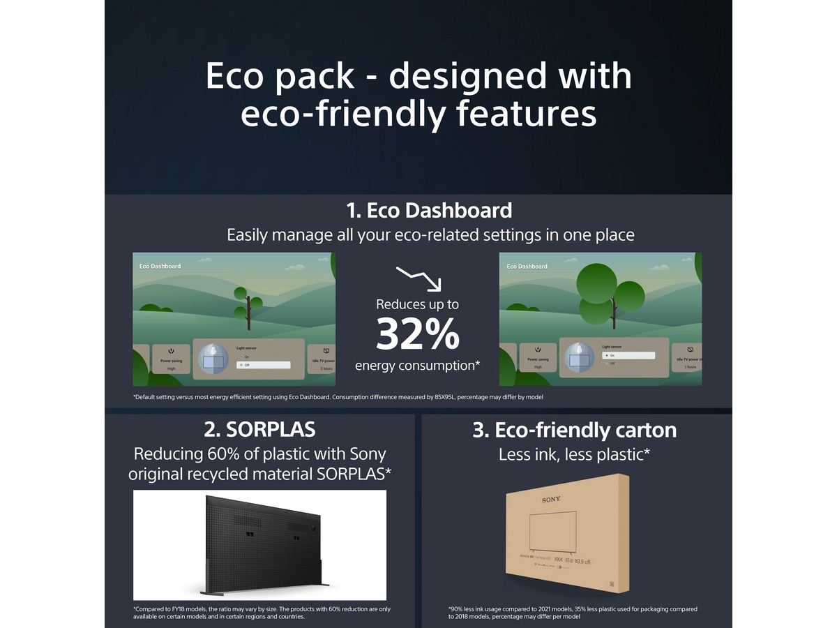 | Egenskaber | CalMAN autokalibreringssupport, Skærmlæser, Audio Description (AD), Chromecast indbygget, Sovetimer, Dual Database Processing, BRAVIA CAM support, Tekstforstørrelse |