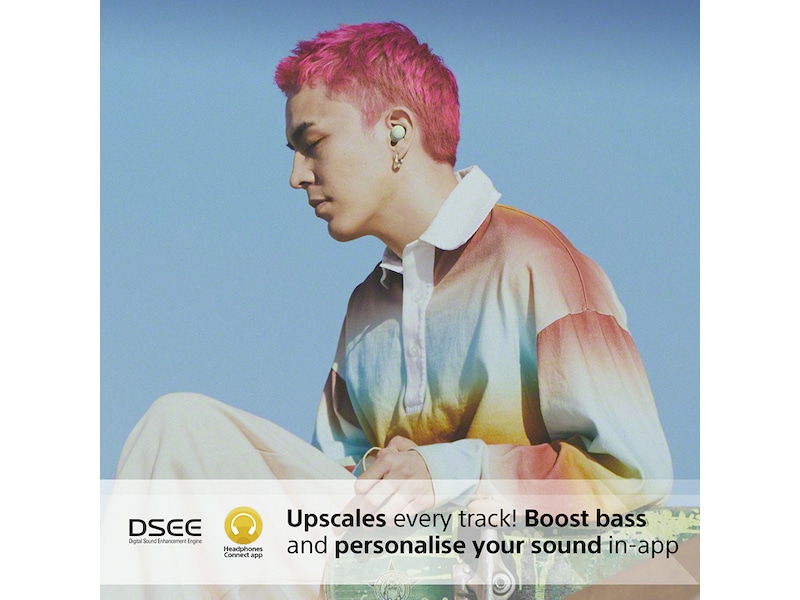 Hør hvert beat i høj kvalitet. DSEE gengiver musik med autentisk vokal og kraftfuld bas. Du kan tilpasse lyden i appen og nyde vores fordybende 360 Reality Audio-certificerede oplevelse.