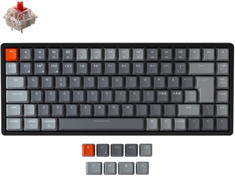 K2's 84 nøgledesign ved at beholde alle de væsentlige funktionstaster som Page Up/Down, Home, End og Screen capture (cmd+shift+4), som er vigtige for din produktivitet. Med N-tast rollover (kun NKRO i kablet tilstand) kan du registrere så mange taster, som du kan trykke på på én gang uden at gå glip af tegn.