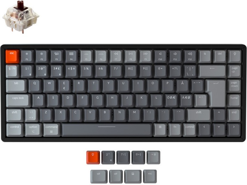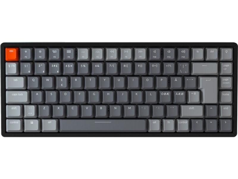 K2's 84 nøgledesign ved at beholde alle de væsentlige funktionstaster som Page Up/Down, Home, End og Screen capture (cmd+shift+4), som er vigtige for din produktivitet. Med N-tast rollover (kun NKRO i kablet tilstand) kan du registrere så mange taster, som du kan trykke på på én gang uden at gå glip af tegn.