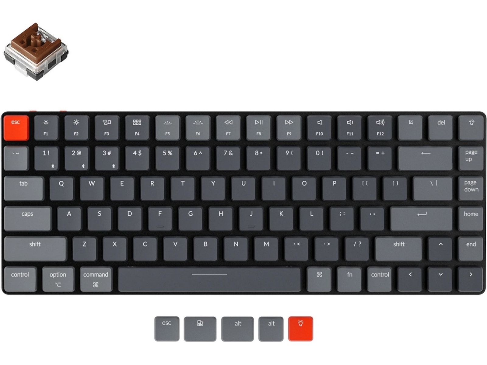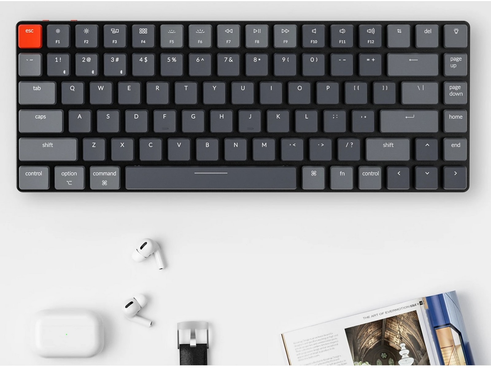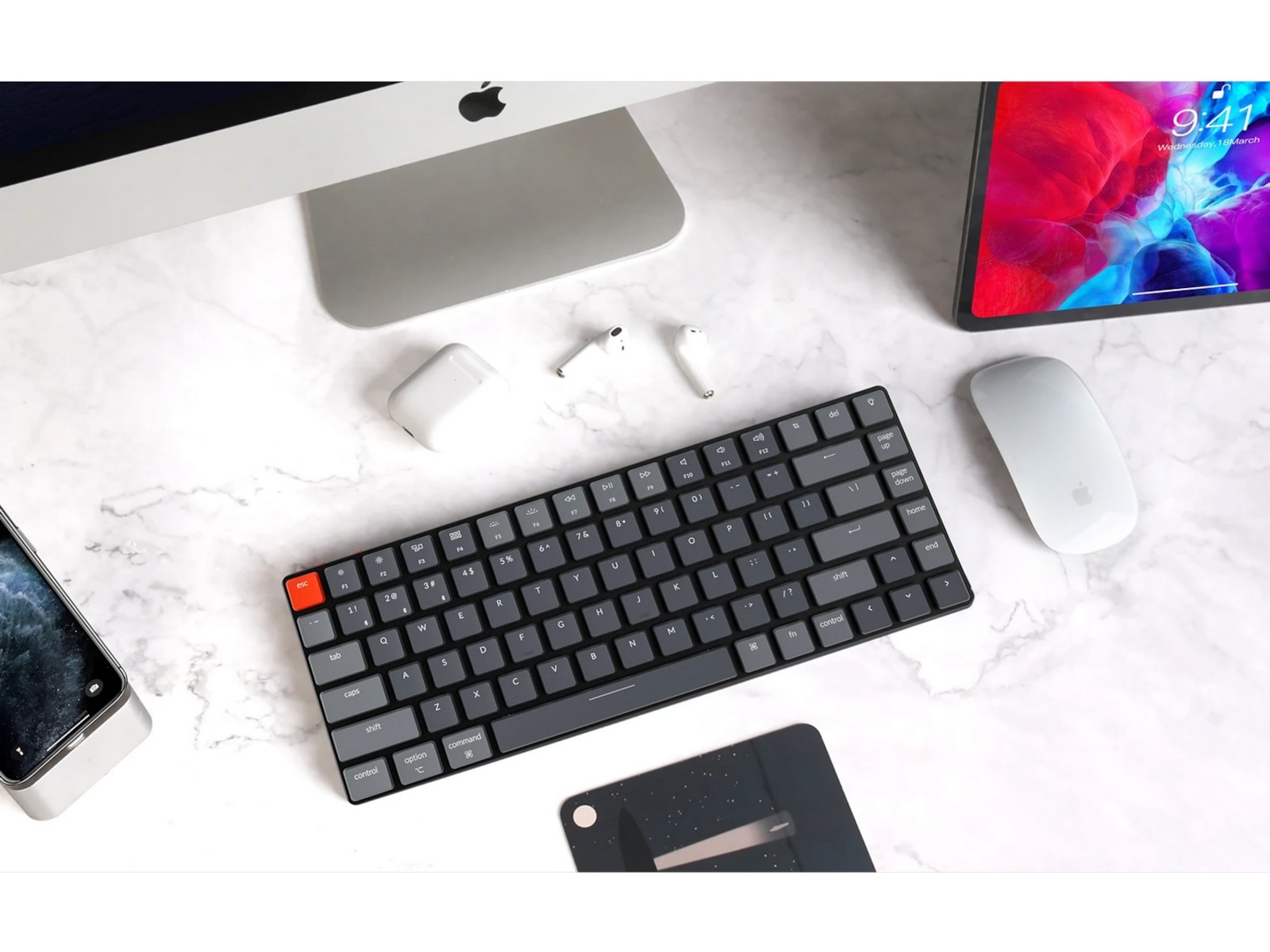 Den nydesignede lavprofilafbryder er 40 % slankere end konventionelle afbrydere. Sammen med det strømlinede aluminiumshus gør K3 et af de tyndeste og letteste trådløse mekaniske tastaturer i verden.