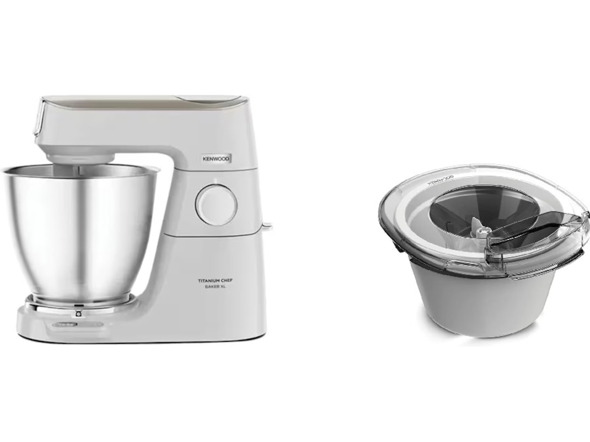 Dette er et pakketilbud: Du får Kenwood Titanium Chef Baker Lite KVL65.001WH og Kenwood Ismaskine KAX71.000WH inkluderet i denne pakke.