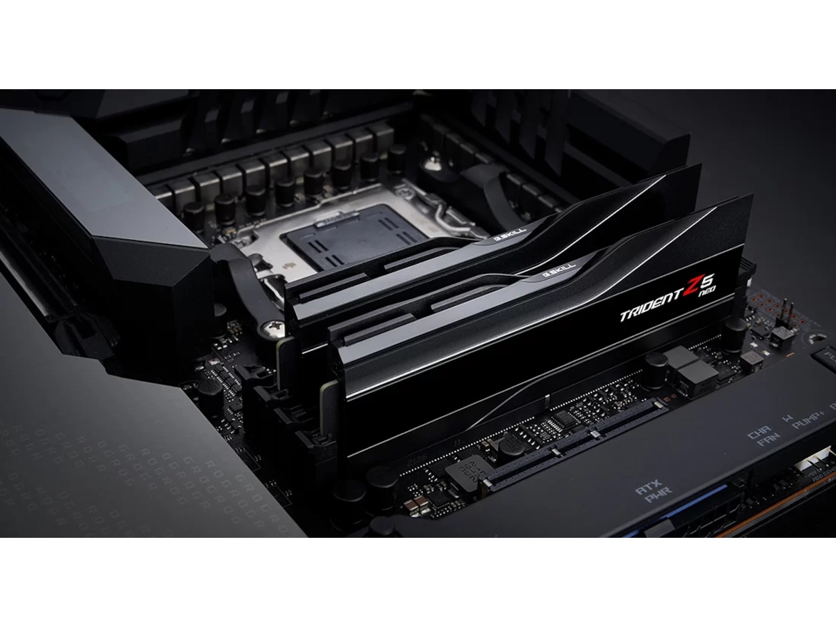 Trident Z5 Neo-seriens DDR5-hukommelse er designet til ultrahøj overclocket ydeevne på DDR5-aktiverede AMD-platforme. Med AMD EXPO overclocking-teknologi til nem hukommelsesoverclocking på understøttede AMD-platforme, er Trident Z5 Neo-serien det ideelle valg til at bygge højtydende systemer.