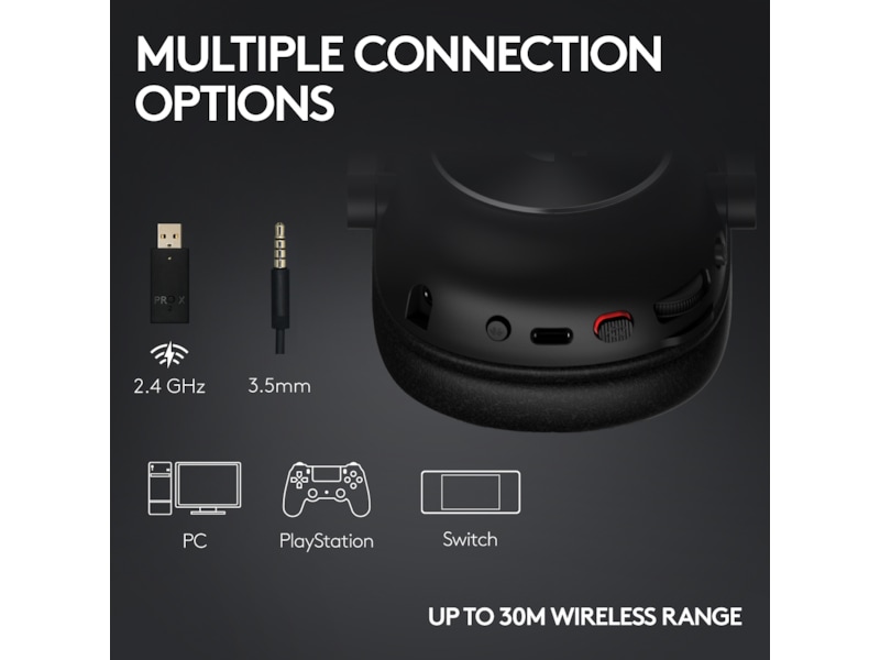 Udstyret med Logitech LIGHTSPEED teknologi af professionel kvalitet med op til 50 timers batterilevetid og op til 30 m trådløs rækkevidde på 2,4 GHz.