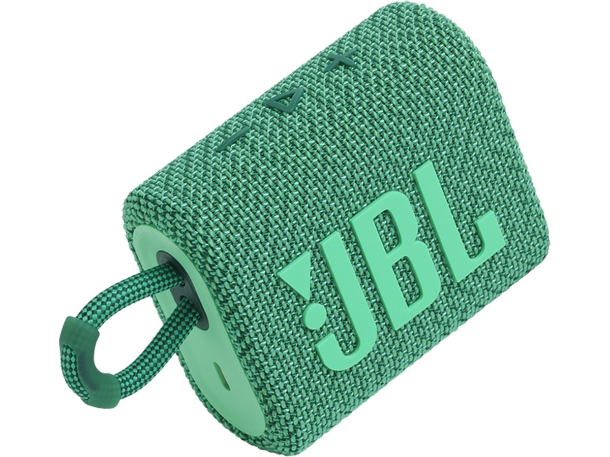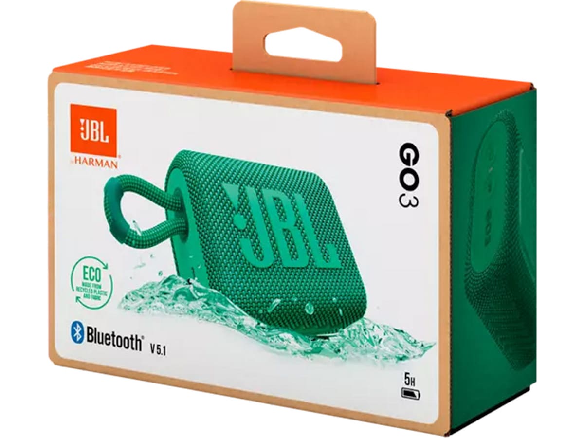 Nyt innovativt, miljøvenligt design – samme rige JBL Original Pro Sound-ydeevne. JBL Go 3 Eco er fremstillet ved at bruge op til 90 % PCR (post-consumer recycled) plastik med 100 % genbrugt stof på højttalergrillen, hvilket reducerer mængden af ny plastik, der bruges, samtidig med at produktets samlede CO2-fodaftryk. Den kommer også i bæredygtig emballage lavet af FSC-certificeret papir trykt med sojablæk.