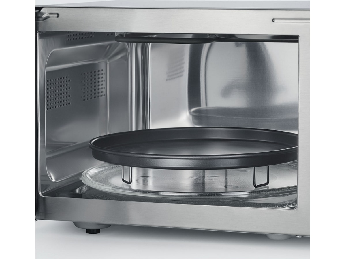 yderligere non-stick pizzaplade (diameter ca. 28 cm), perfekt til hjemmelavet pizza og frossen pizza Robust kogeinteriør i rustfrit stål, der er let at rengøre.