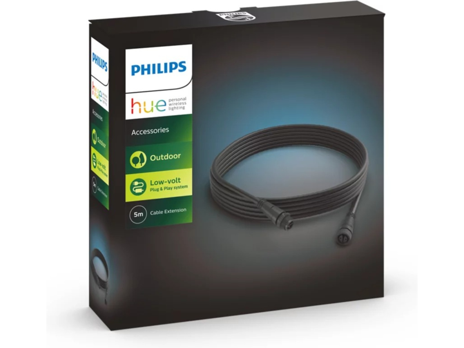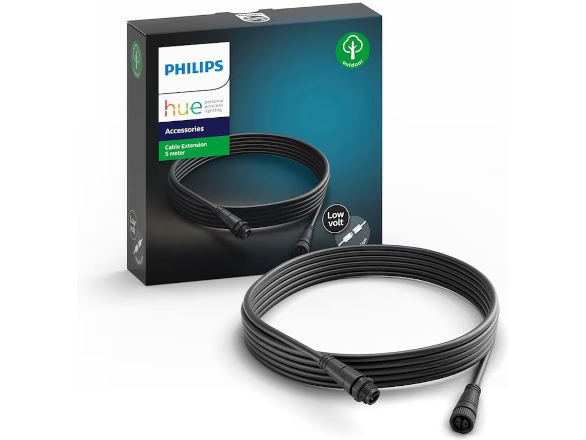 Med dette Philips Hue Outdoor extension cable på fem meter kan du øge afstanden mellem strømforsyningen og din første intelligente udendørslampe eller mellem lamperne.