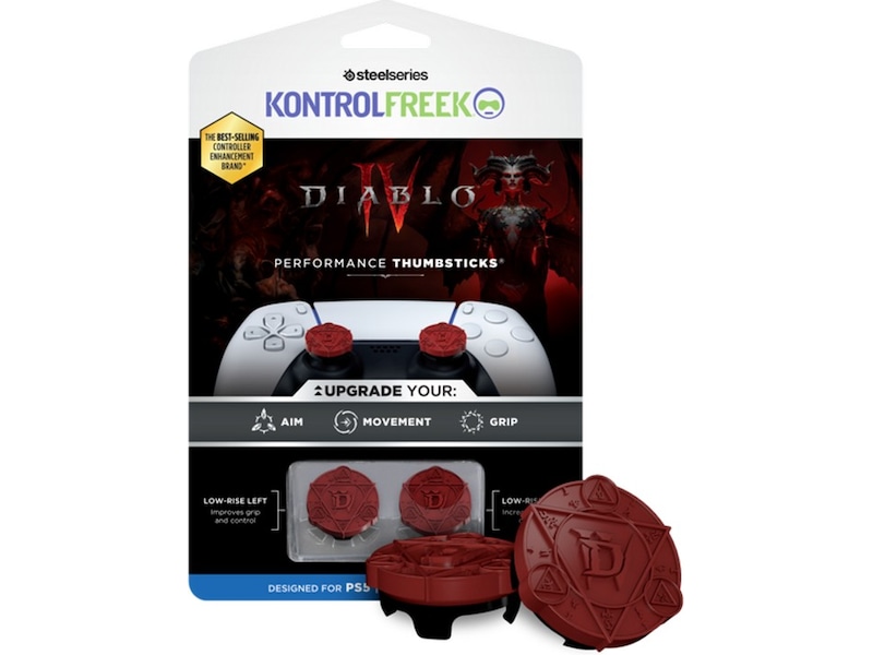 Diablo® IV Performance Thumbsticks er specielt designet til at give dig mere greb og øget kontrol, mens du hacker og hugger for at erobre de mareridtsagtige fangehuller og belejrede byer i Sanctuary. Det officielle design ætset i laser og den blodrøde farve vil fordybe dig i kampen om verdens skæbne.