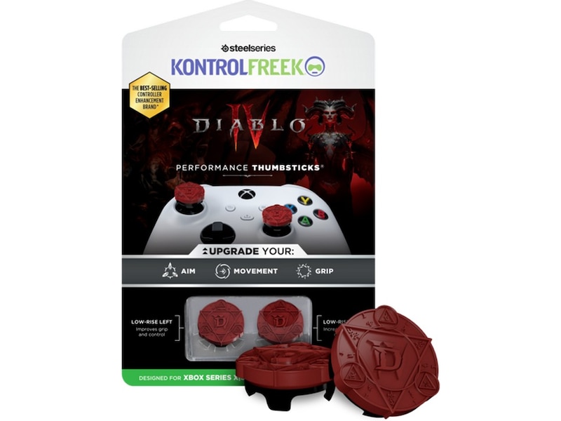 Diablo® IV Performance Thumbsticks er specielt designet til at give dig mere greb og øget kontrol, mens du hacker og hugger for at erobre de mareridtsagtige fangehuller og belejrede byer i Sanctuary. Det officielle design ætset i laser og den blodrøde farve vil fordybe dig i kampen om verdens skæbne.