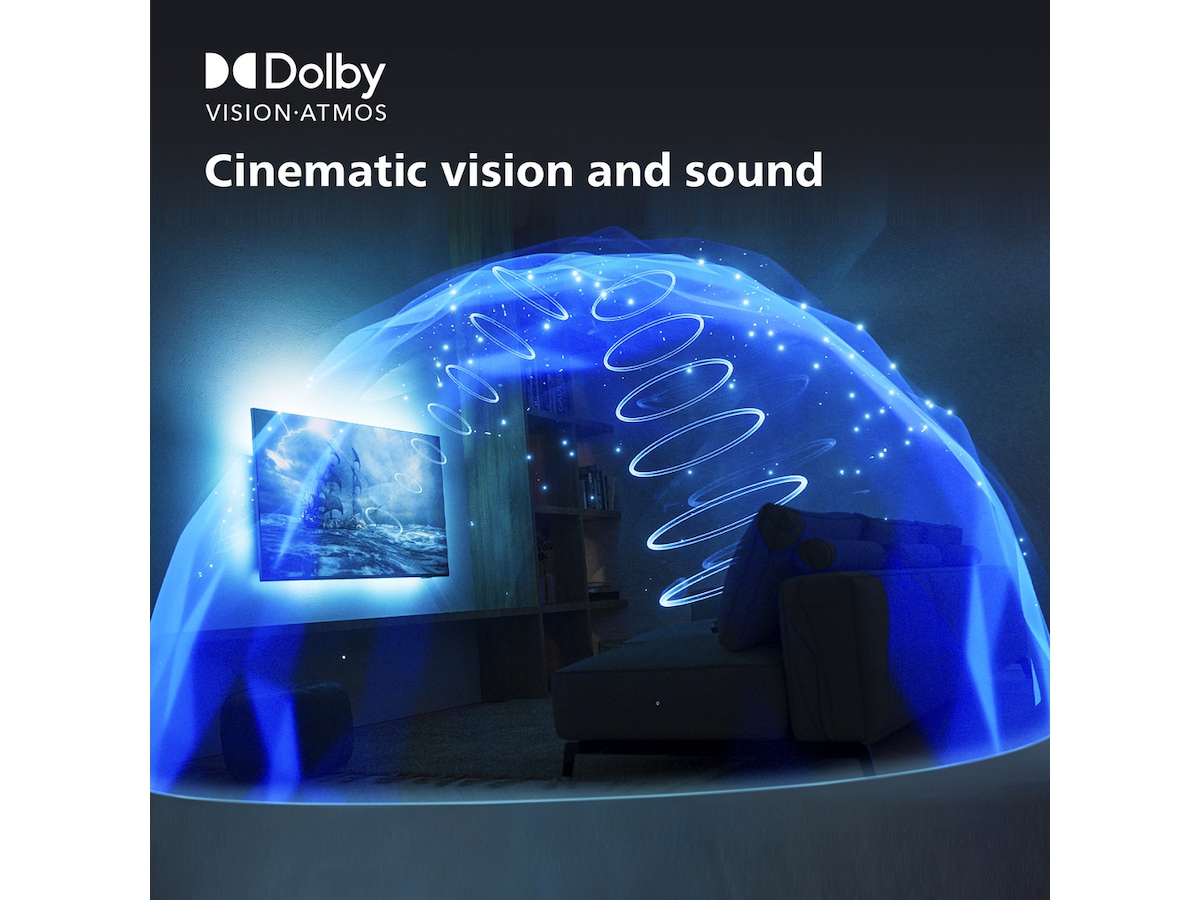 Vil du se de seneste udgivelser? Fortæl bare dette tv's indbyggede Alexa, hvad du leder efter, og du kan læne dig tilbage, mens fordybende Ambilight trækker dig længere ind i dramaet! Du får også et meget skarpt billede og realistisk Dolby Atmos-lyd.