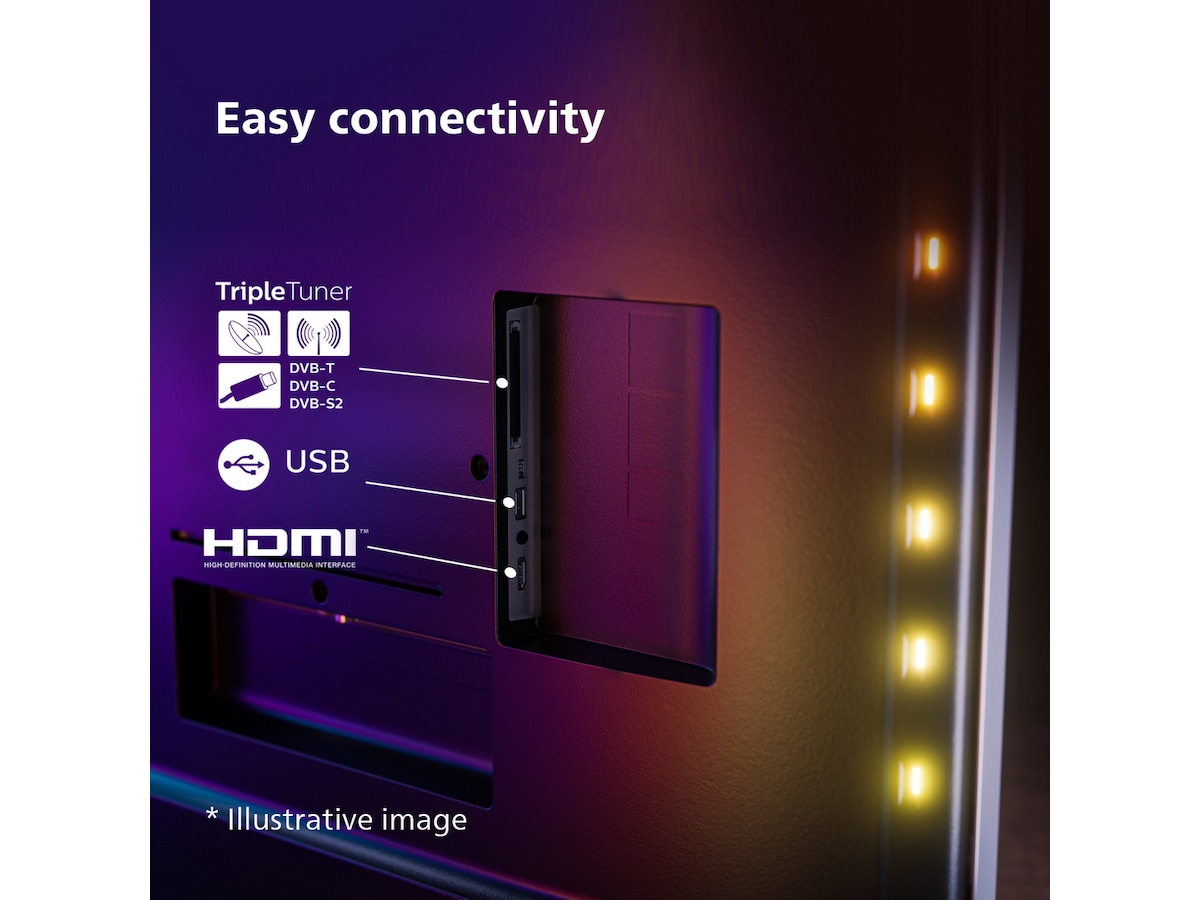 Uanset hvad du leder efter, vil dette stilfulde Ambilight TV finde det. TV'et søger gennem alle de store streamingtjenester, så du hurtigt kan finde det, du vil have, eller komme med forslag. Billedet er skarpt, og Ambilight får det til at føles endnu større
