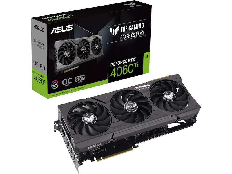 ASUS TUF Gaming GeForce RTX™ 3 8GB GDDR6 med DLSS 4060, lavere temperaturer og forbedret holdbarhed