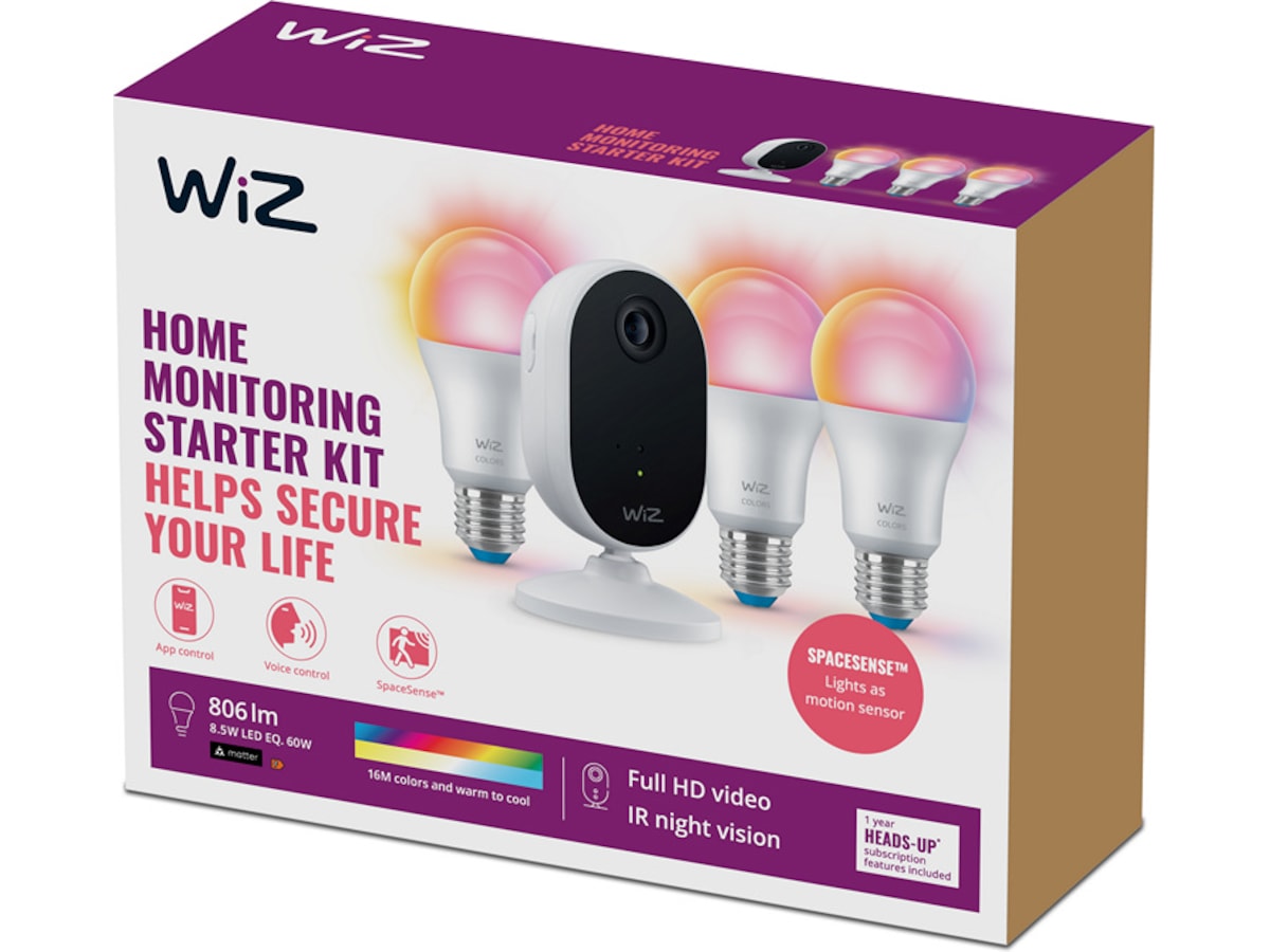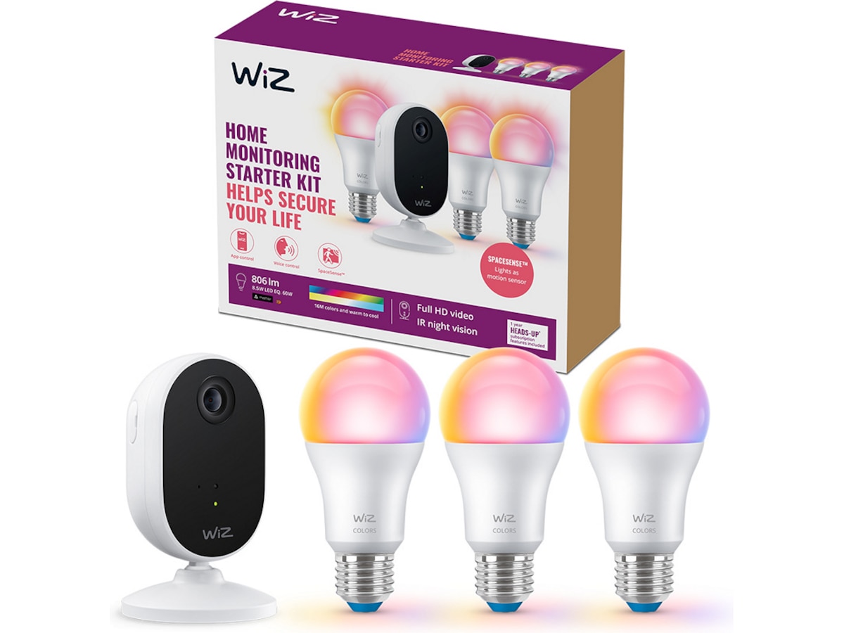 Dette startsæt med WiZ indendørs kamera og tre WiZ A60 farvepærer er den perfekte tilføjelse til dine WiZ lyskilder, da de tilsammen tilbyder den komplette løsning til både at forhindre indbrud og registrere og få besked om aktivitet i dit hjem - uanset om du er lige i nærheden eller placeret væk fra hjemmet. Kameraet kan placeres hvor som helst og aktiveres ved bevægelse, lys og via WiZ-appen.