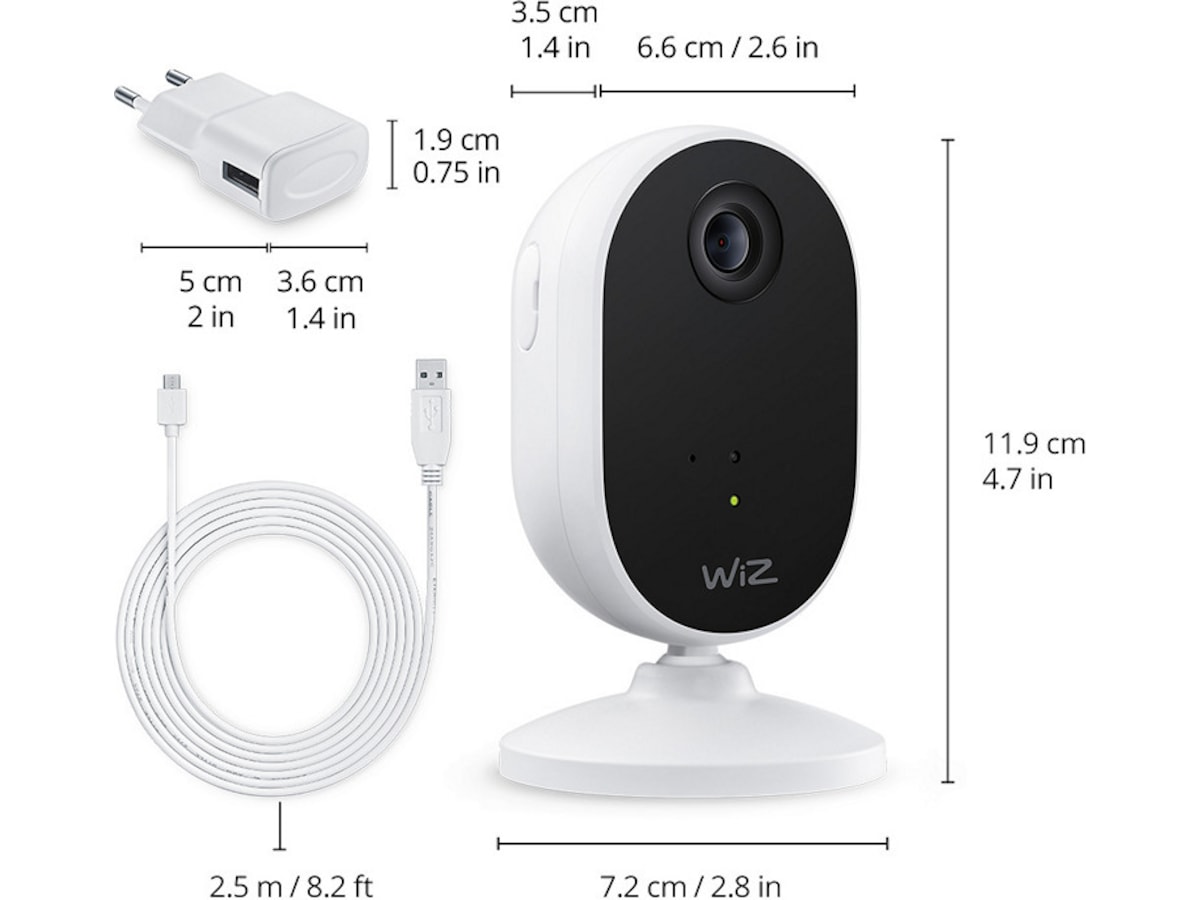 Bordstativet og vægbeslaget betyder, at du nemt kan placere kameraet hvor som helst. Indstil WiZ-kameraet til at dække det ønskede område. Tænd den, og tilslut den til Wi-Fi. Nemmere bliver det ikke. Konfigurer kameraindstillingerne via WiZ-appen, og du kan overvåge dit hjem, når du vil, selv når du er væk.
