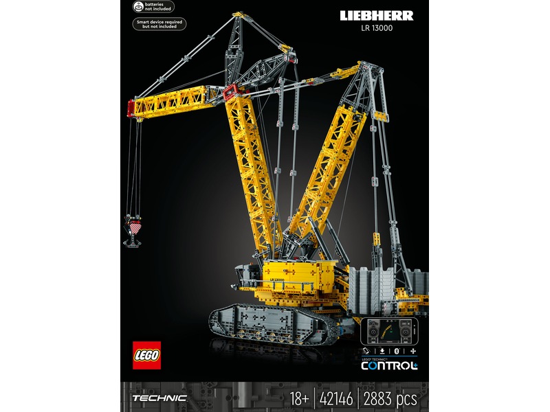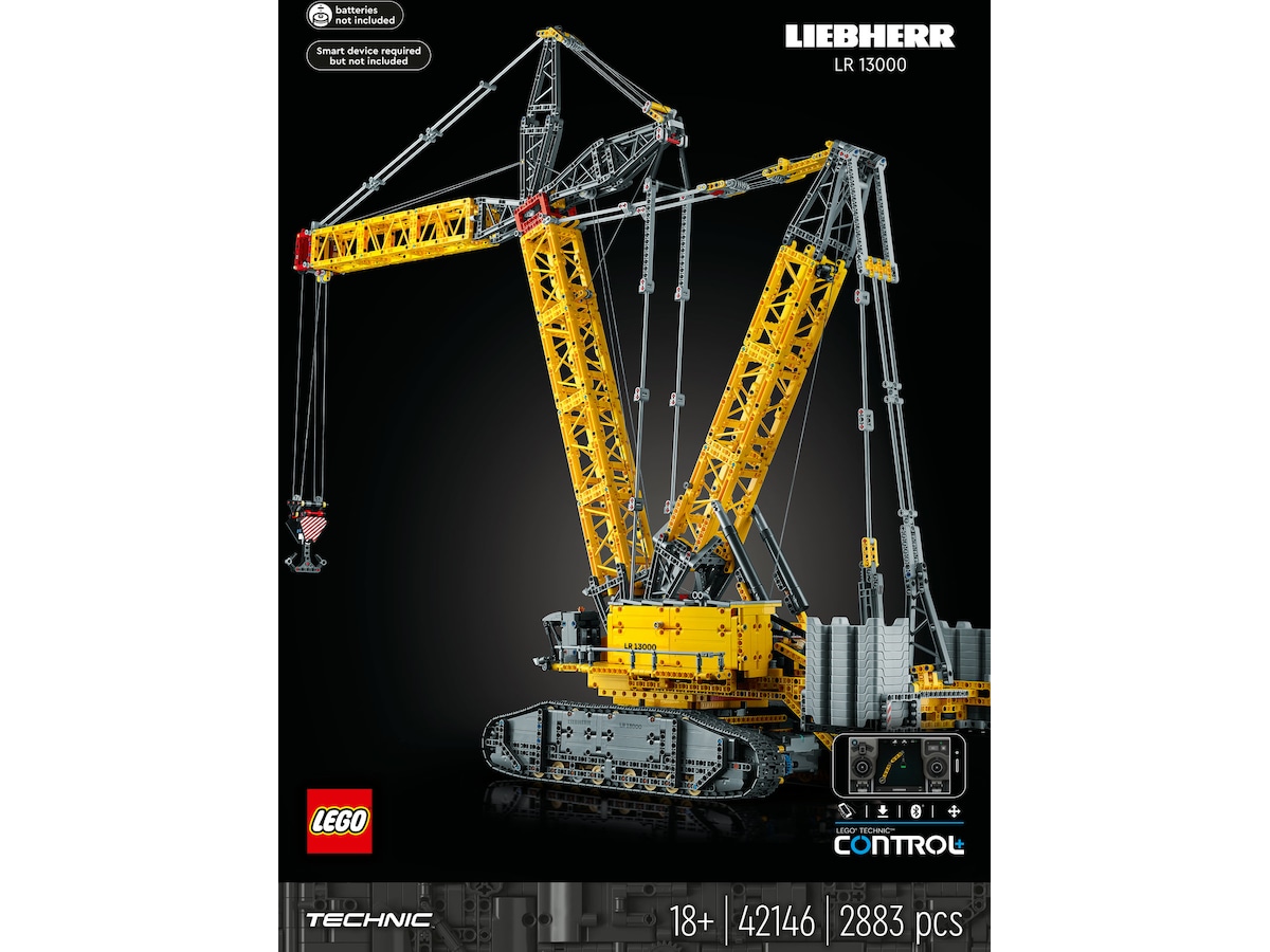 Den er stor, mægtig og din næste byggeudfordring! LEGO® Technic modellen Liebherr LR 13000 bæltekran (42146) til voksne er over 99 cm høj og er en af de største modeller i LEGO Technic sortimentet (pr. august 2023). Den er spækket med detaljer, har realistiske bevægelser og er en imponerende hyldest til en af verdens mest kraftfulde kraner.