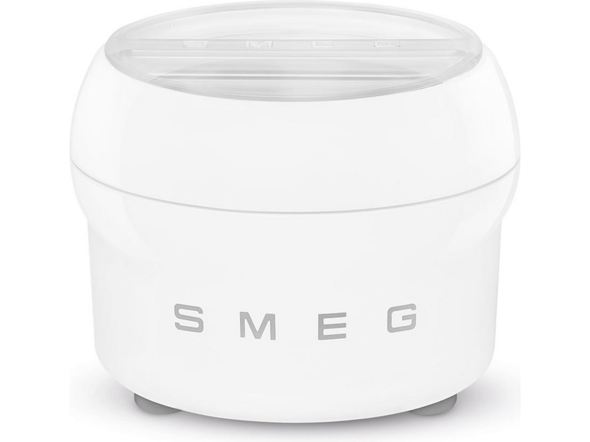 Kølebeholder med dobbeltvæg, der holder kulden. Kan lave op til 1,1 L (1,2 Qt / 37 oz) is, sorbet og frossen yoghurt på cirka 20-30 minutter. Indeholder: Blandespatel med magnetisk adapter, centerring, gennemsigtigt låg og isspatel. Istilbehøret kan KUN bruges på SMEG køkkenmaskiner med rustfri skål af typen SMB401.