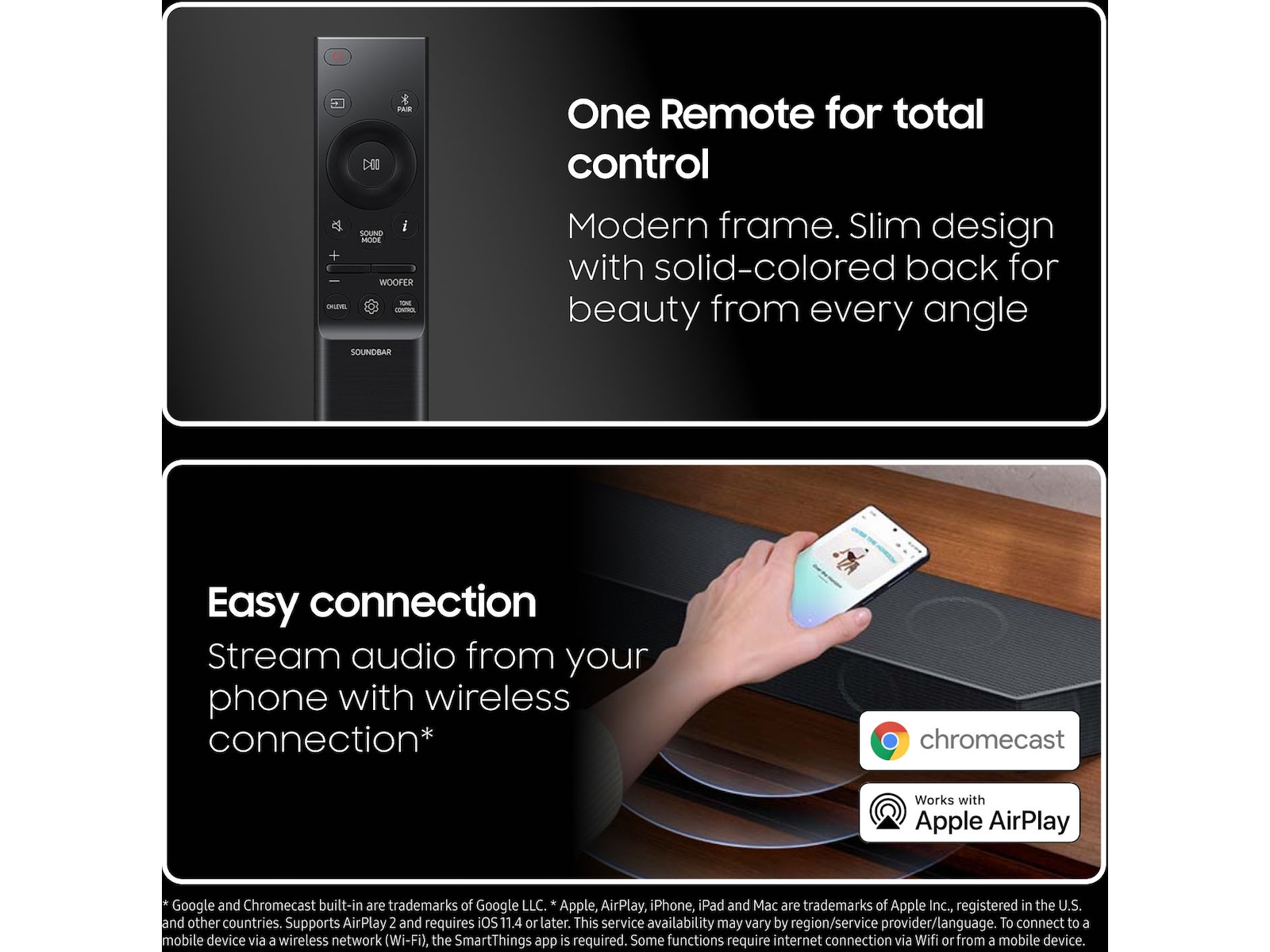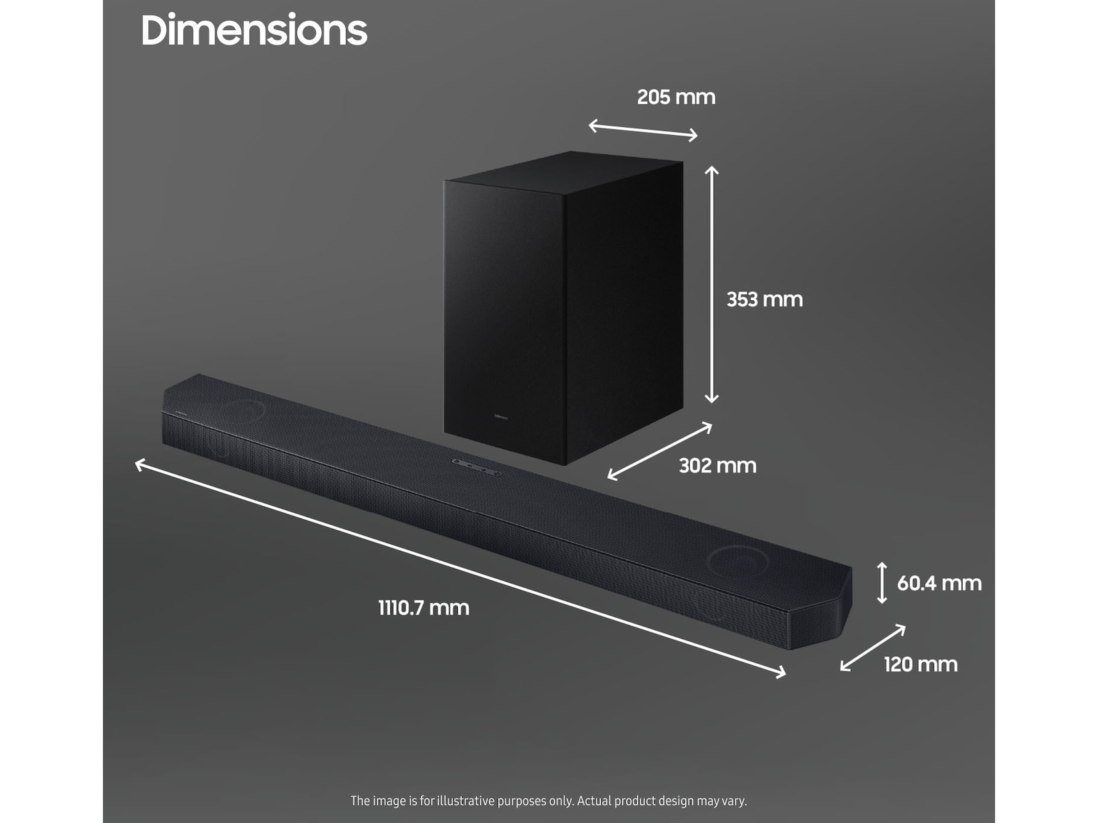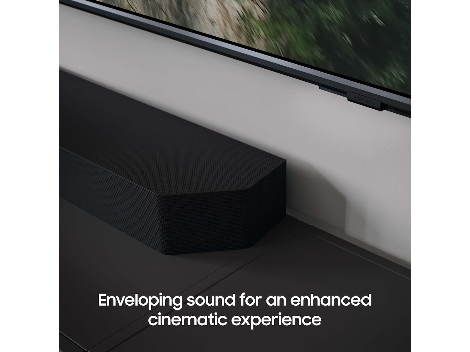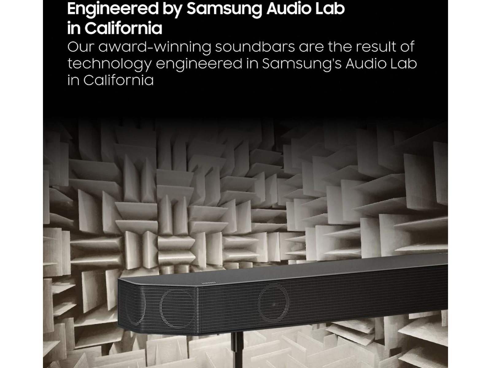 Samsungs soundbar kalibrerer lyden på baggrund af en analyse af rummet fra Samsung TV'et, som giver en klar og omsluttende lyd, der er skræddersyet til rummet.