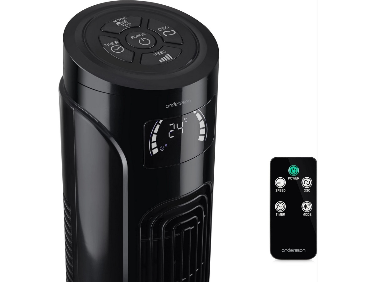 Andersson TRF 2.2 er meget nem at bruge. Kontrolpanelet øverst består af fem knapper med tydelige ikoner, som giver dig mulighed for at vælge blæsertilstand eller indstille en timer. Du kan også aktivere de samme funktioner ved hjælp af den medfølgende fjernbetjening, så du har øjeblikkelig adgang uanset om du sidder i sofaen eller ligger i sengen.