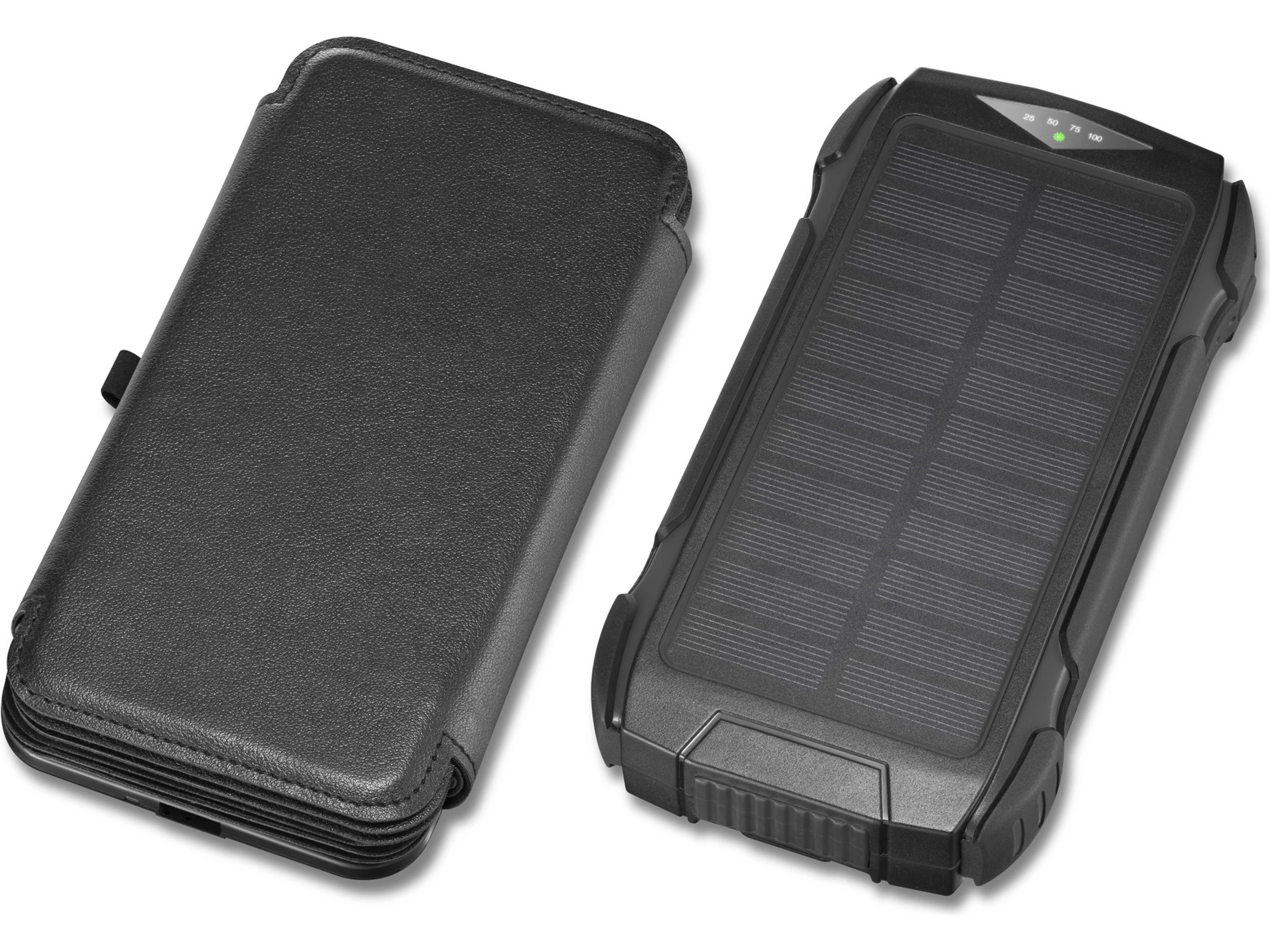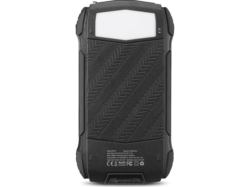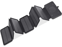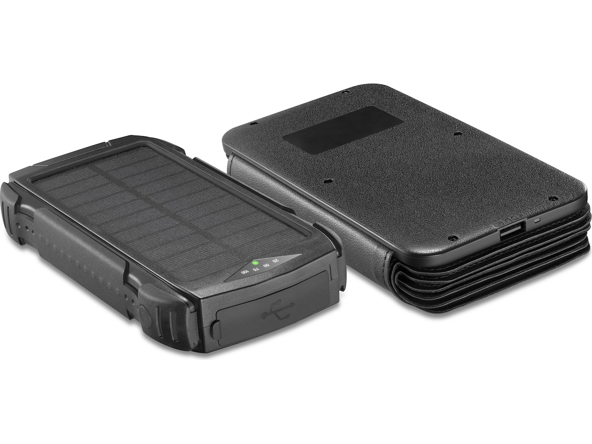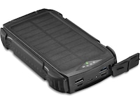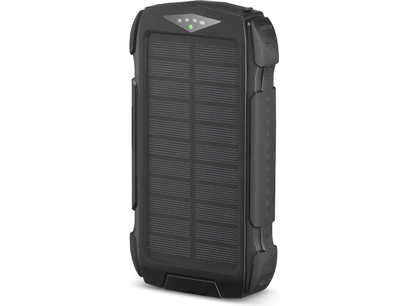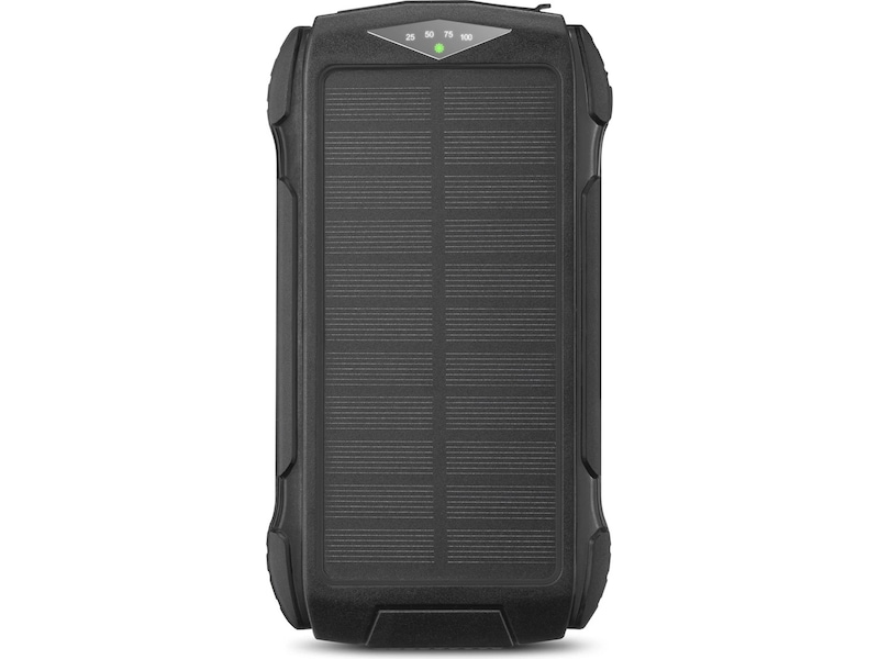 Solpanelerne på powerbanken giver dig mulighed for at oplade enheden med en maksimal effekt på 14 W. Det betyder, at batteriniveauet holder sig oppe, så længe solen gør.