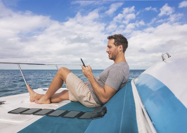 Solpanelerne på powerbanken giver dig mulighed for at oplade enheden med en maksimal effekt på 14 W. Det betyder, at batteriniveauet holder sig oppe, så længe solen gør.